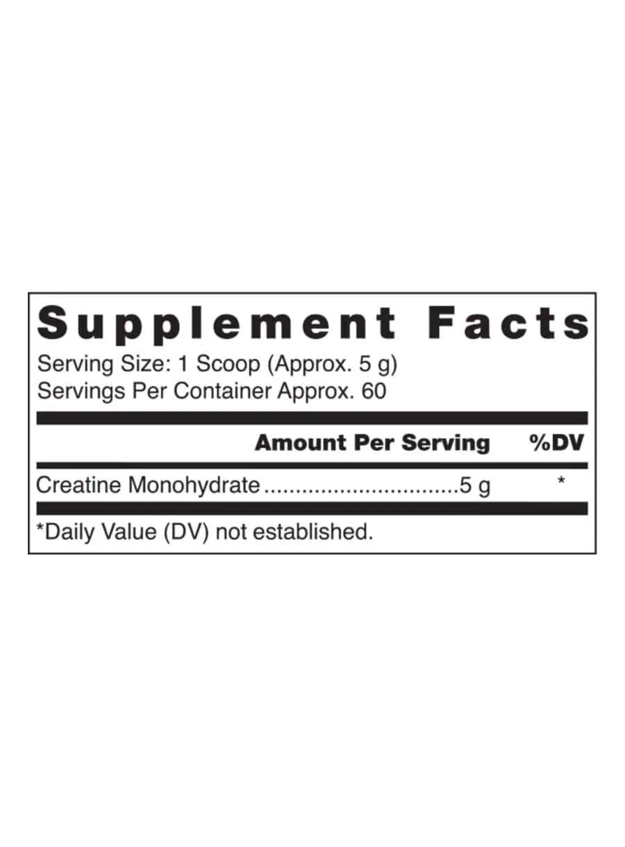 - Each serving contains 5 g of creatine monohydrate.