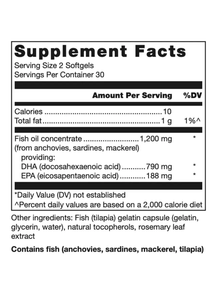 Klean DHA features a blend of fish oil concentrate derived from anchovies, sardines, and mackerel, providing essential omega-3 fatty acids, DHA and EPA, which are crucial for heart and brain health.