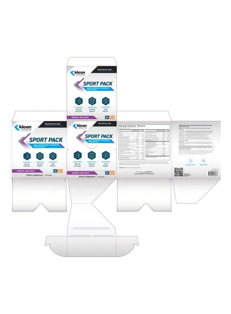 Klean Sport Pack — Designed for athletes, this convenient on-the-go packet provides essential daily health support. Each packet contains a blend of vitamins, minerals, and omega-3 fatty acids to help maintain optimal performance and overall wellness.