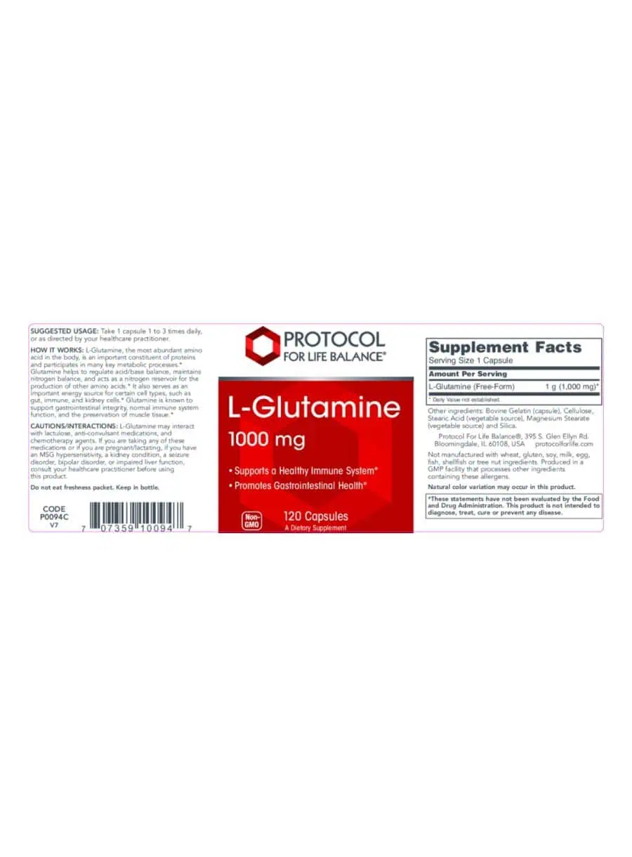L-Glutamine 1000mg by Protocol For Life