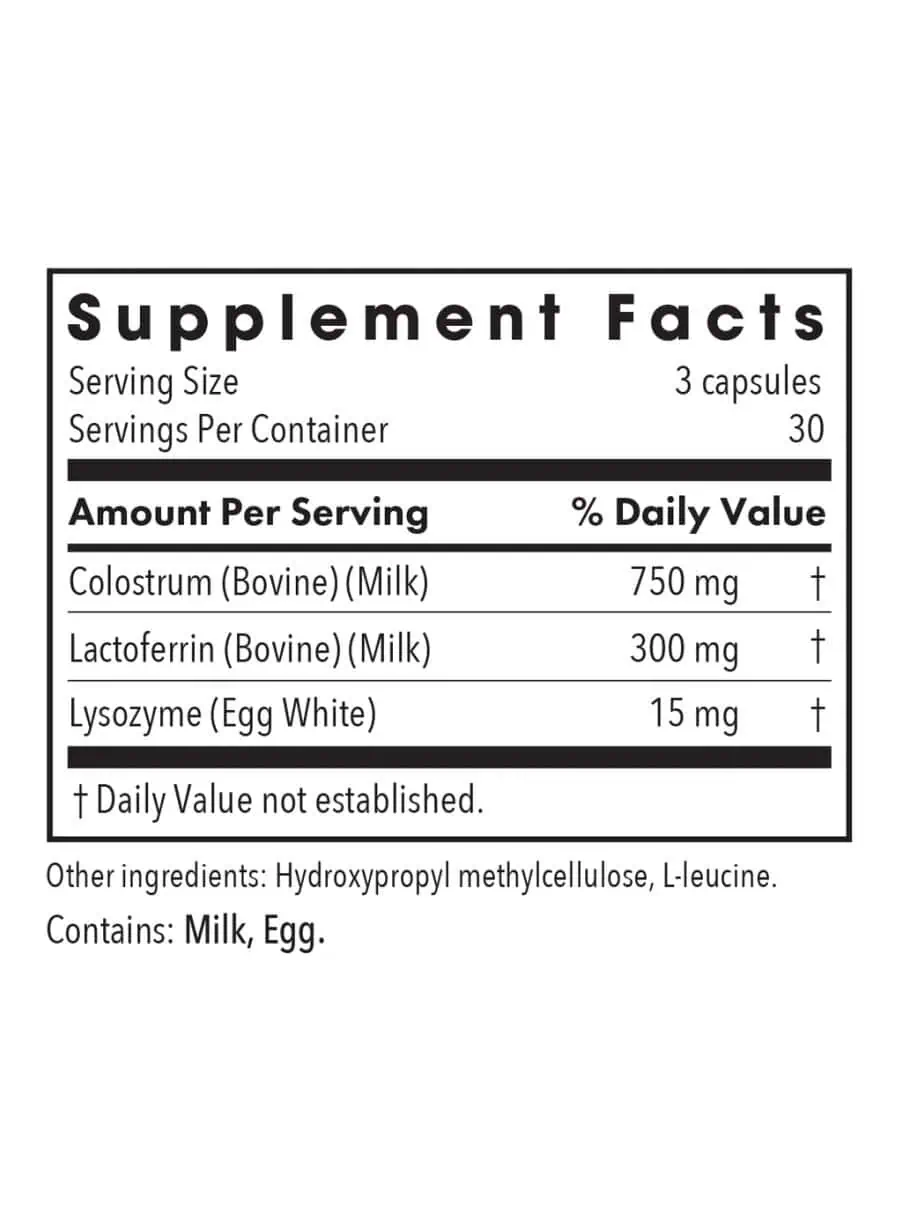 The combination of lactoferrin and colostrum provides essential nutrients, growth factors, and antibodies that support immune system function and promote healthy gut permeability.