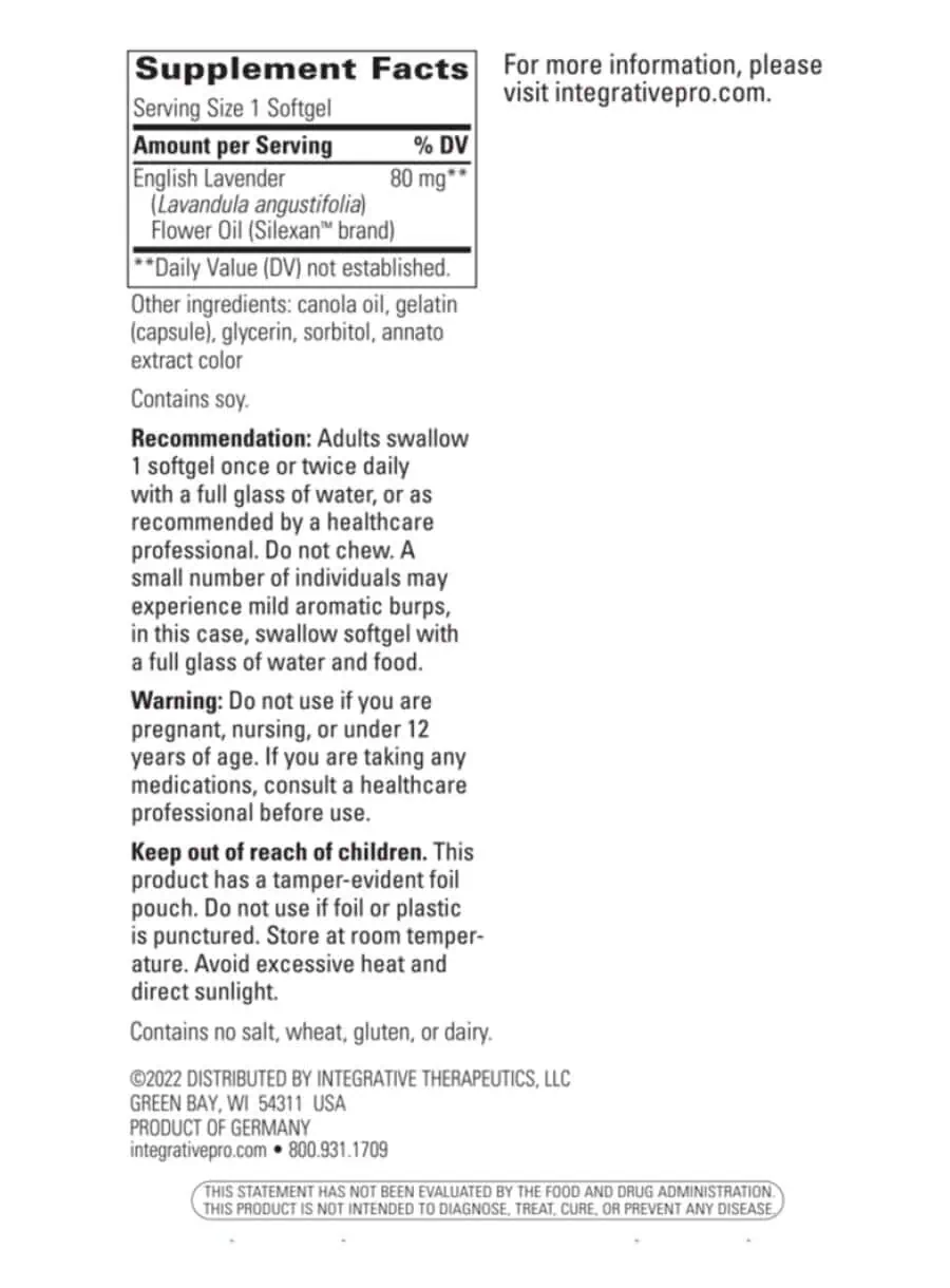Why Is Canola Oil Used in Lavela WS 1265™? Since the proprietary lavender oil Lavela WS 1265 is not soluble in water, it must be delivered in an oil-based carrier. Canola oil was selected because it is one of the healthiest oils available, with a beneficial ratio of monounsaturated, polyunsaturated, and saturated fatty acids. The canola oil used in Lavela WS 1265is sourced from Europe and has not been genetically modified (non-GMO). Although some individuals have expressed concerns about the purity of canola oil as an ingredient in dietary supplements, the canola oil in Lavela WS 1265 is pure and safe for daily use. Integrative Therapeutics™ conducts extensive laboratory analysis to ensure the safety and efficacy of every product. Every lot of every product is tested to ensure that it contains the proper amount of each key ingredient, while being free from harmful levels of pesticides, heavy metals, and microbial contaminants.