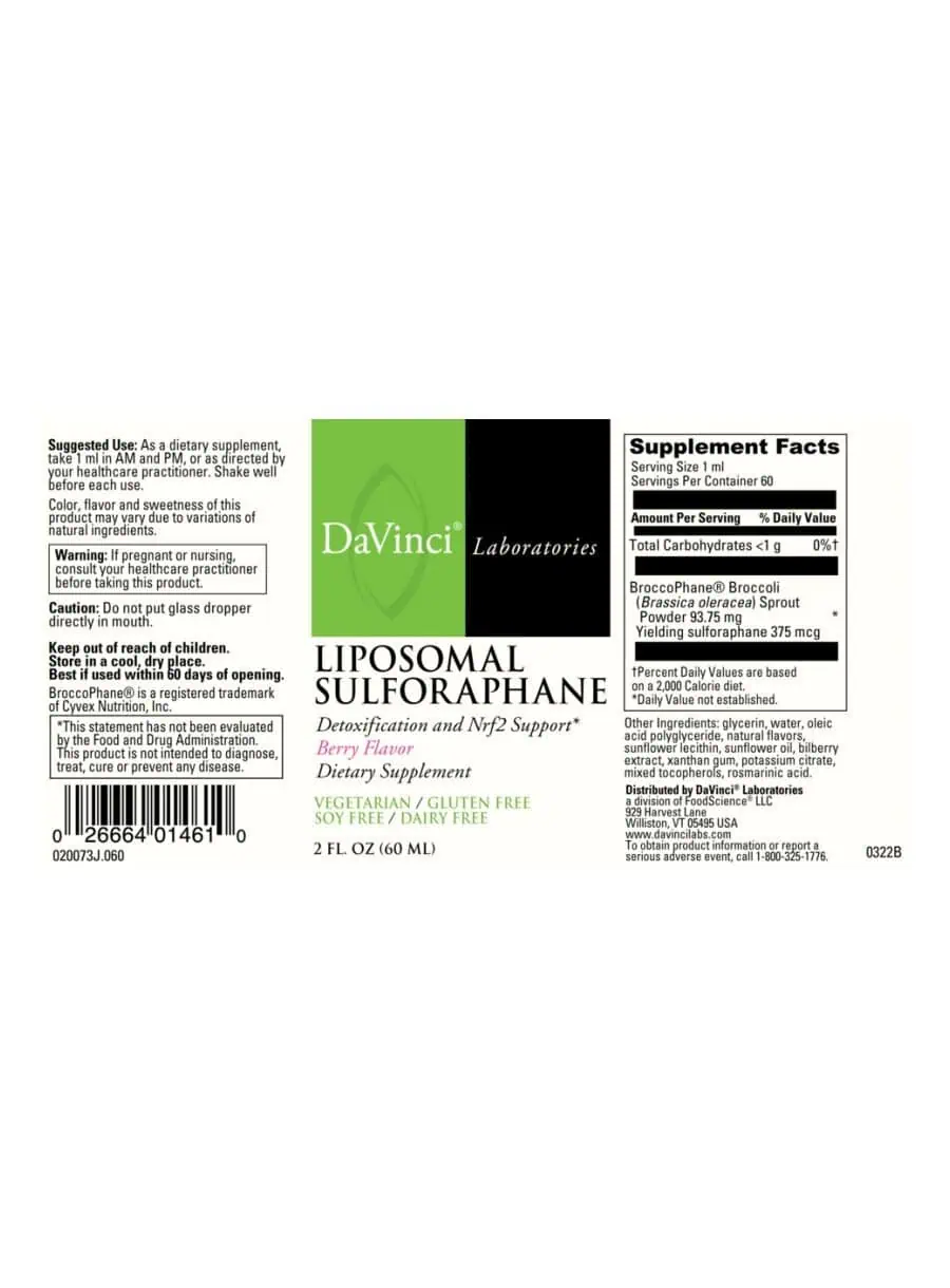 Sulforaphane activates the Nrf-2 pathway, which plays a crucial role in cellular defense mechanisms. The liposomal form ensures better bioavailability and protection from digestive degradation.
