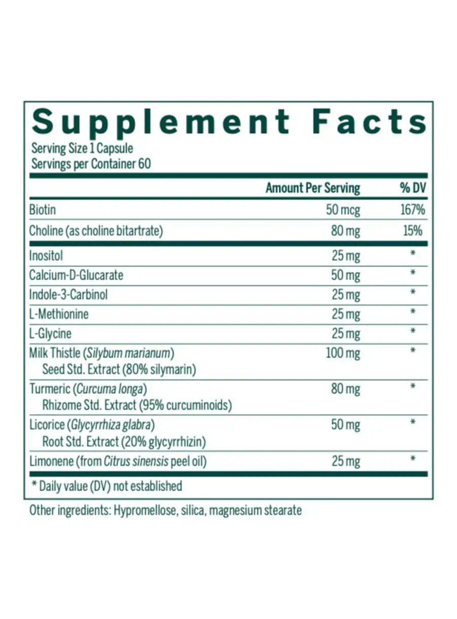- Includes standardized extracts from milk thistle, turmeric, and licorice