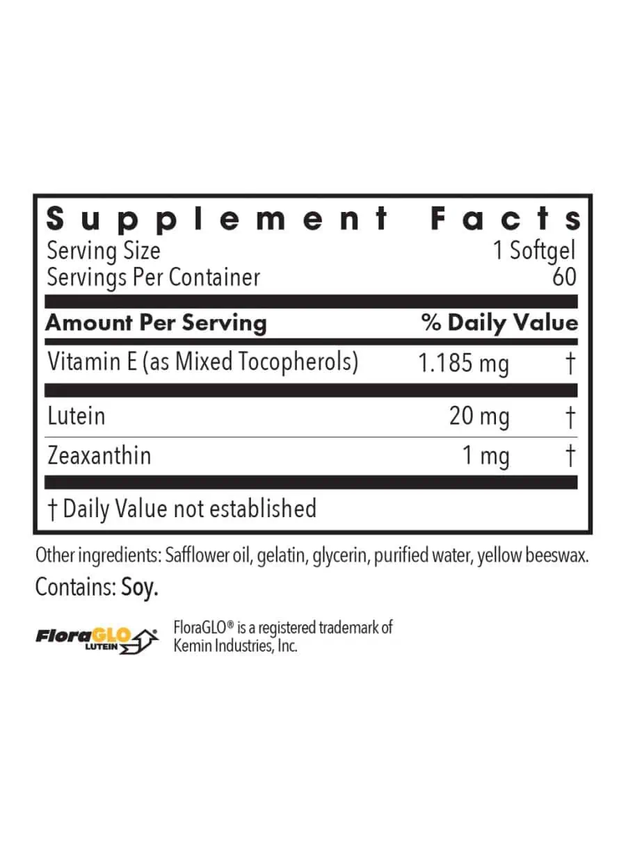 Lutein 20mg — Lutein is a powerful carotenoid antioxidant found in the eye, brain, breast, and cervix. It is primarily located in the macular region of the eye, where it plays a crucial role in supporting healthy vision, especially as we age. This supplement is designed to enhance the concentration of lutein in the macula, helping to filter blue light and quench free radicals that can lead to oxidative stress.