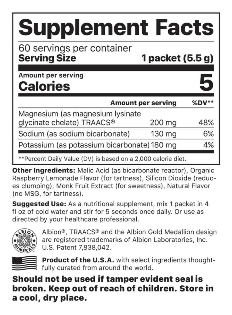 MagSoothe Tart Raspberry Lemonade is a delicious, fast-acting magnesium supplement powder designed to promote relaxation and support overall wellness. Utilizing the highly bioavailable Magnesium Lysinate Glycinate Chelate from Albion Labs, this supplement combines magnesium with bicarbonate for enhanced absorption and effectiveness. Ideal for those seeking to improve muscle function, recovery, and sleep quality, this product is a great addition to your daily routine.