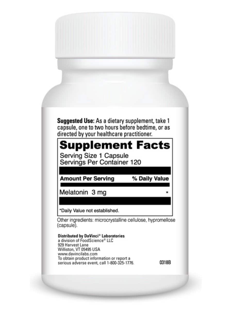 Melatonin 3mg — A dietary supplement to support normal sleep. Melatonin is a natural biorhythm regulating metabolite that is secreted by the brain’s pineal gland and has beneficial effects on sleep and jet lag. This supplement is designed for those seeking to improve their sleep quality and manage sleep-related issues.