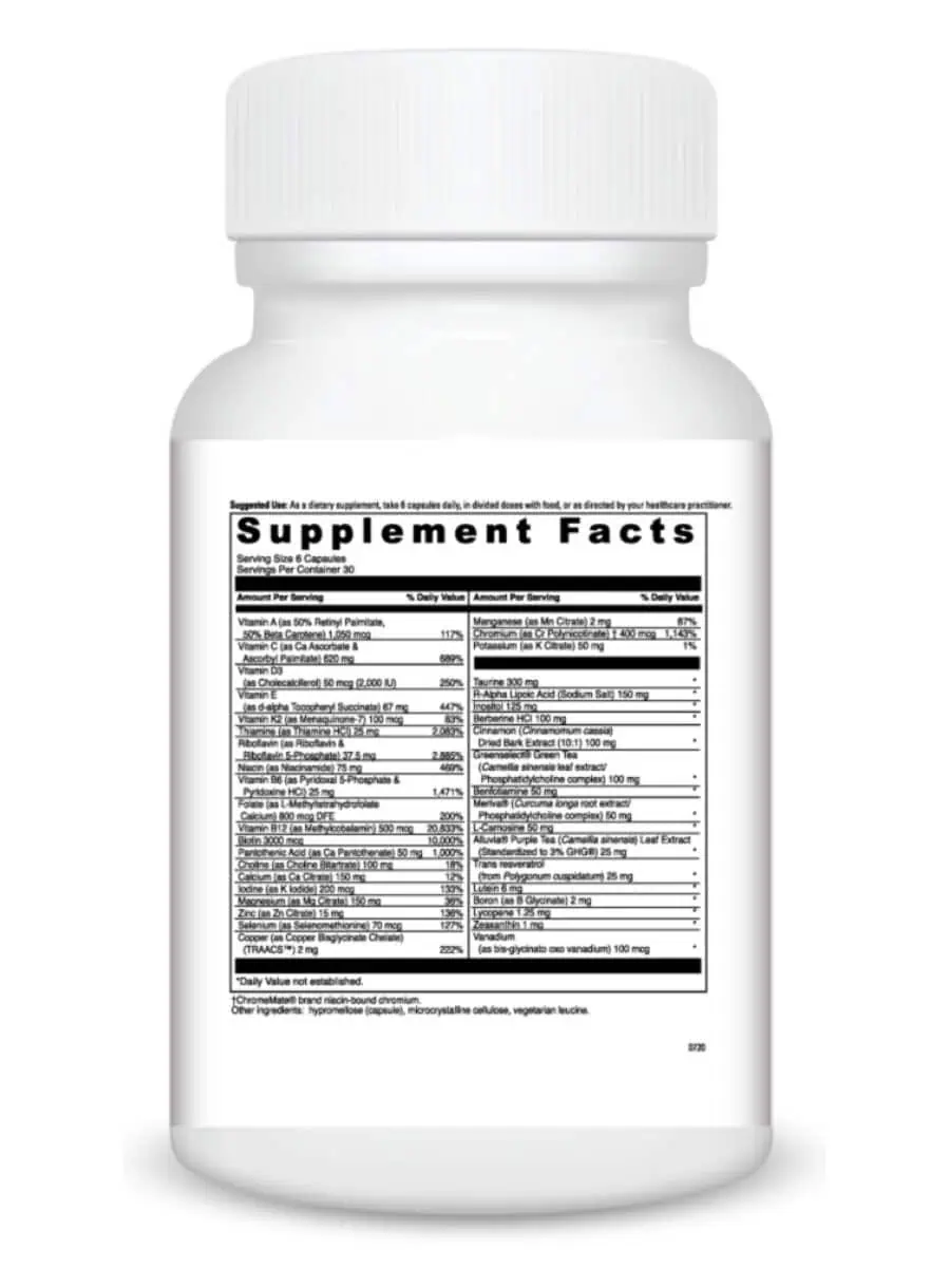 Metabolic Multi — This comprehensive multivitamin offers bioactive vitamins and bioavailable forms of plant extracts, including 5-MTHF, to support metabolic health and energy levels. Featuring berberine for macronutrient metabolism and GreenSelect Green Tea Phytosome for thermogenic support, it includes 38 nutrients at optimal levels to ensure you receive exactly what is recommended by healthcare professionals.