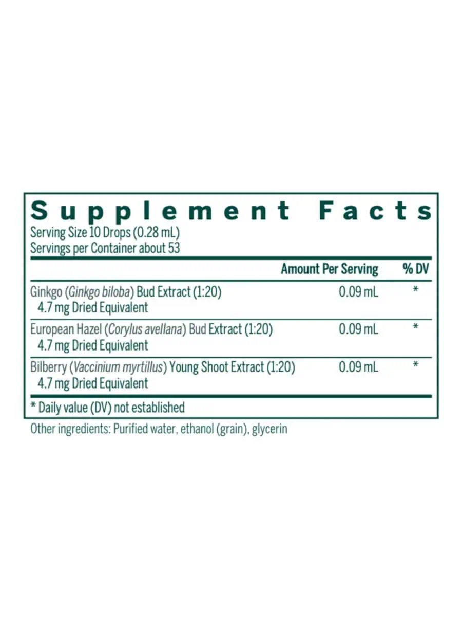 | Ginkgo (Ginkgo biloba) Bud Extract (1:20) 0.47 mg Dried Equivalent | 0.009 ml | - |