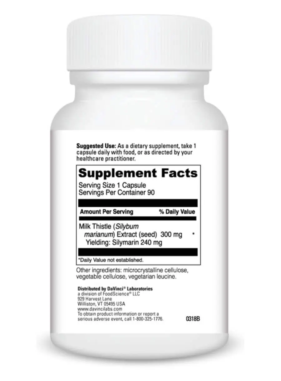 DaVinci’s Milk Thistle is standardized to yield 240 mg (80%) Silymarin per capsule. Milk Thistle has been the subject of numerous scientific and clinical studies.