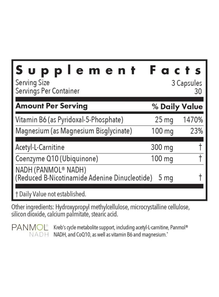 Mitochondrial Cofactors Cellular Energy Formula — This formula supports Kreb’s cycle metabolites, featuring key ingredients like acetyl-L-carnitine, Panmol® NADH, and CoQ10, along with vitamin B6 and magnesium. It is designed to enhance cellular energy production and is suitable for individuals looking to support their metabolic health.