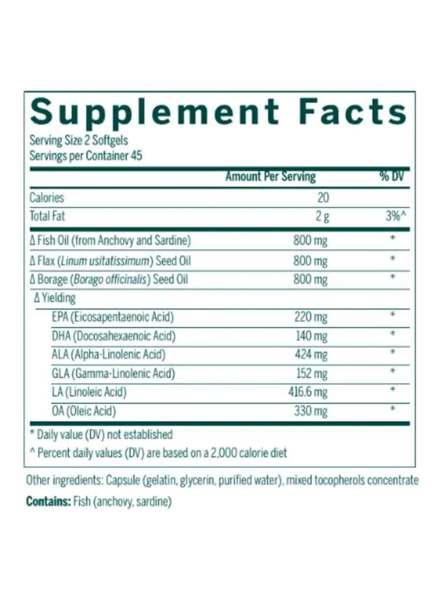 Multi EFA Capsules — This unique blend of fish, flax, and borage seed oils provides essential fatty acids (EFA) that support brain, eye, and cardiovascular health. With a total of 3,445 mg of EFA per daily dose, these capsules are designed for adolescents and adults looking to enhance their overall health and well-being.