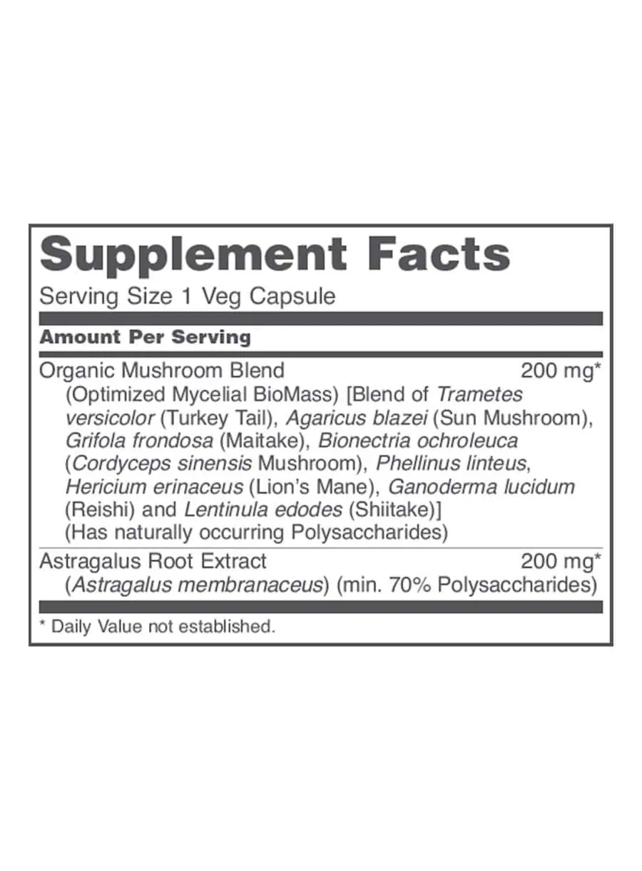- Includes a Mushroom Blend with Astragalus Extract