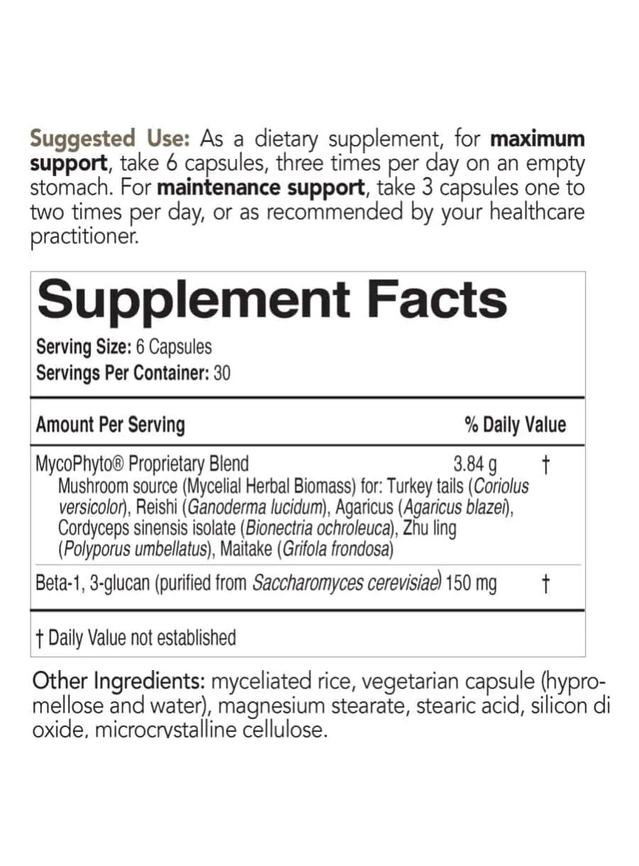 The mushrooms in MycoPhyto Complex, along with additional beta-glucans, work synergistically to promote vitality and resilience, ensuring your immune system is alert and ready to combat pathogens effectively.