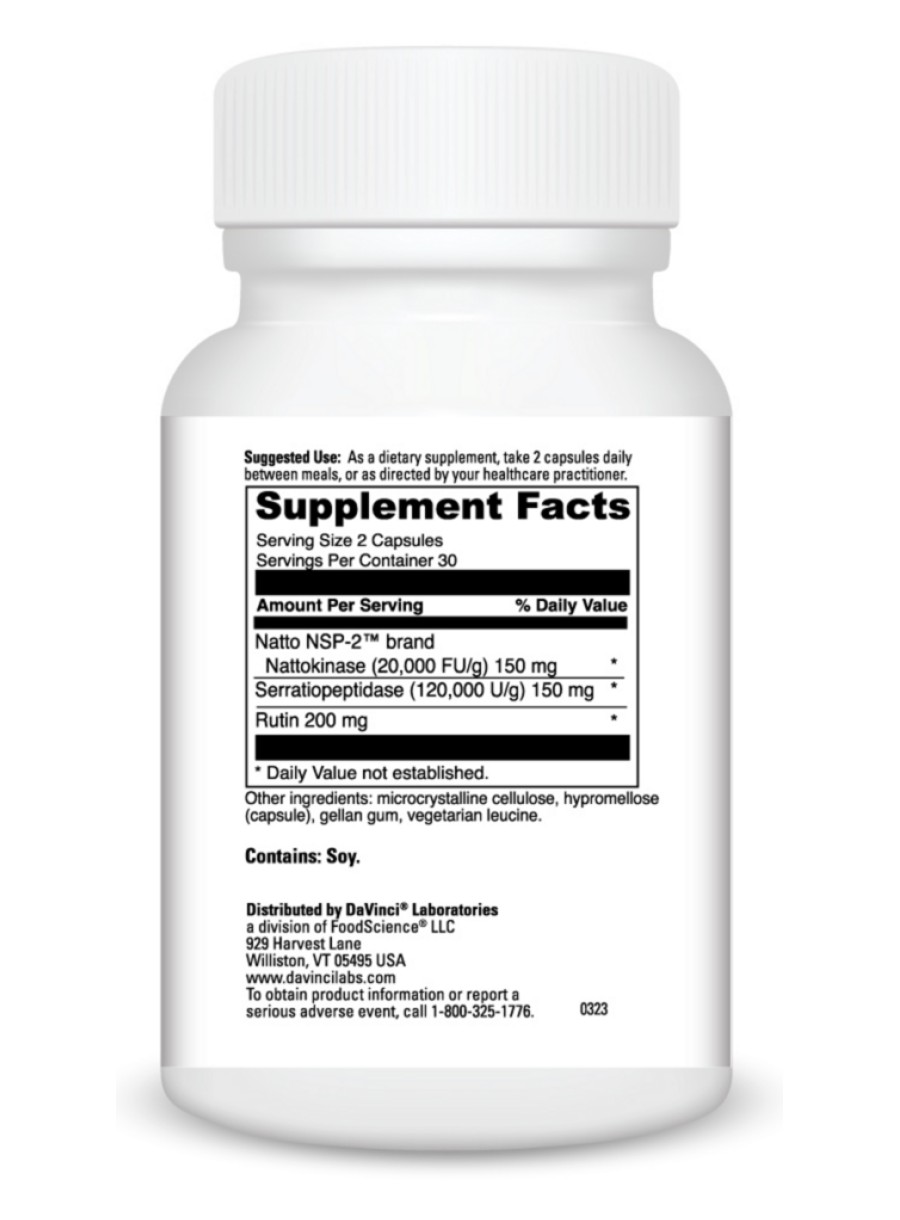 This formula combines Nattokinase and Serratiopeptidase to promote fibrinolytic activity, while Rutin provides antioxidant support.