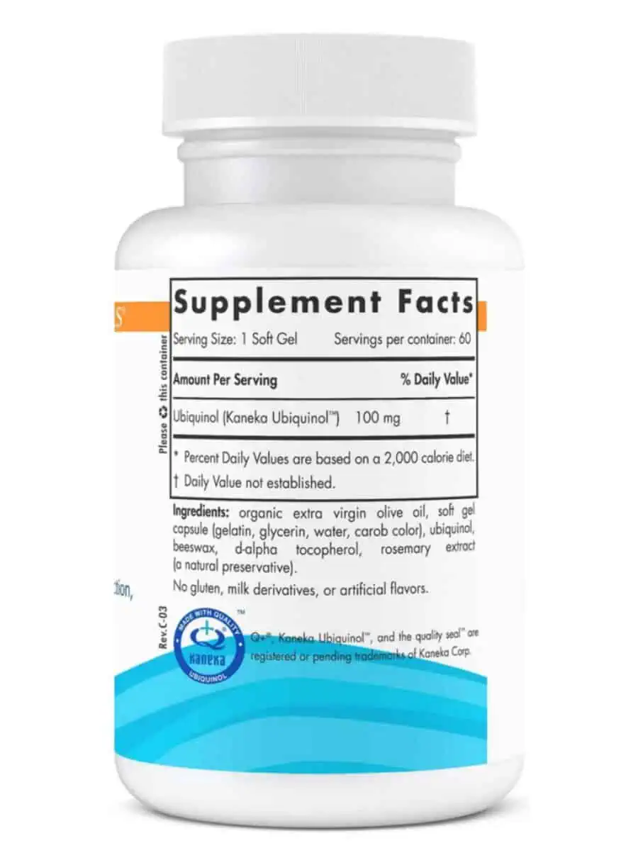 Nordic CoQ10 Ubiquinol provides 100 mg of coenzyme Q10 (CoQ10) ubiquinol to support cellular energy production and cardiovascular health. Ubiquinol is the active antioxidant form of CoQ10, a fat-soluble molecule found in nearly every cell, tissue, and organ in the body, which helps transform food into energy. It is ideal for people who may be deficient in CoQ10, or for individuals with cardiovascular conditions, those taking statin drugs, or for anyone over the age of 40 looking for extra antioxidant support. Ideal companion to any Nordic Naturals omega-3 product.