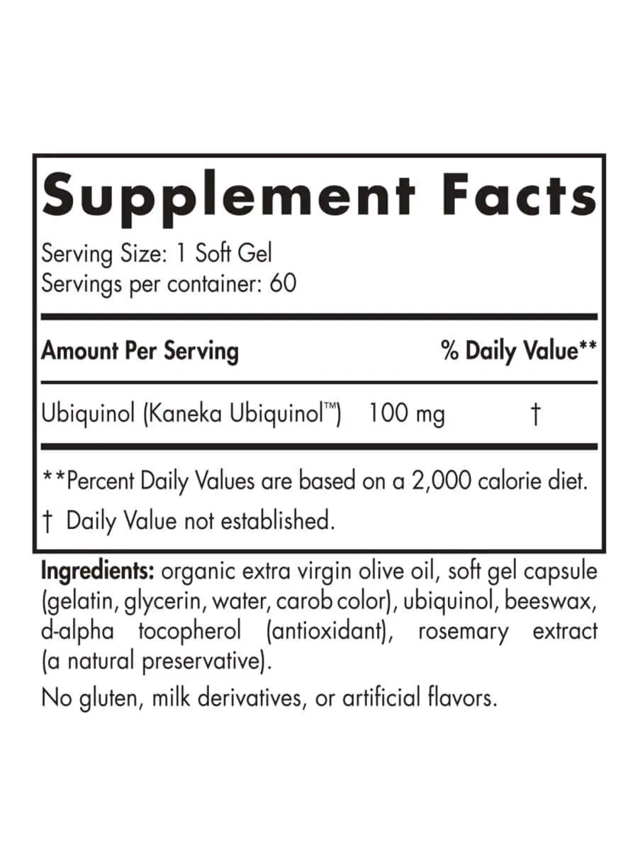 - 100 mg coenzyme Q10 (CoQ10) ubiquinol in extra virgin olive oil