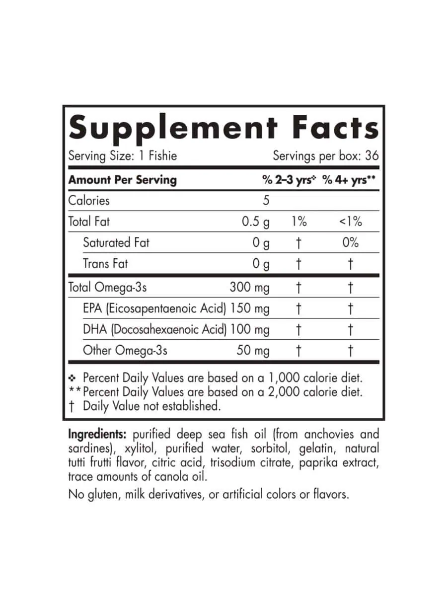 Suggested Use: For 2 years and over, 1 fish daily with food, or as directed by your health care professional or pharmacist. Please ensure child chews each fish thoroughly.