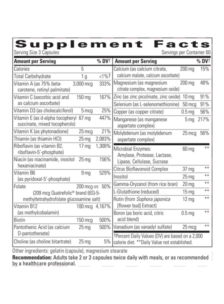 - Comprehensive multivitamin and mineral support