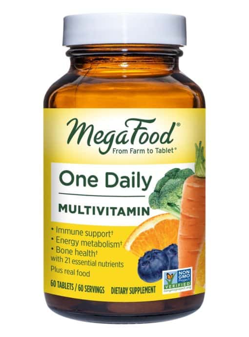 One Daily — MegaFood’s signature once-daily multivitamin is designed for anyone looking to support their optimal health and wellbeing. This nourishing blend of FoodState Nutrients™ includes vitamins and minerals derived from real, whole foods such as orange, carrot, rice, and nutritional yeast. It can be taken at any time of the day, even on an empty stomach, making it a convenient choice for busy lifestyles.