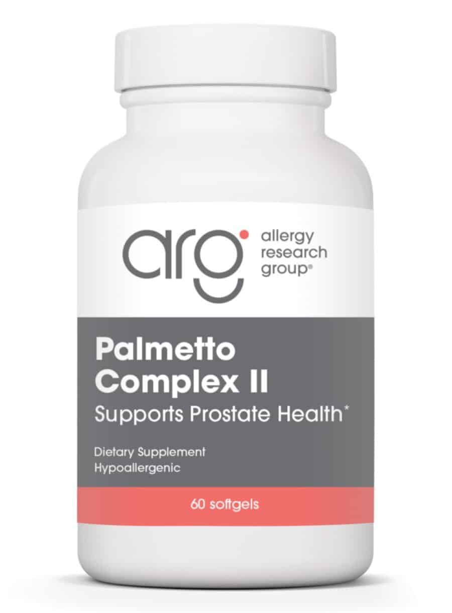 Palmetto Complex II — A unique formulation of nutrients to support prostate health. This supplement features the highest quality standardized saw palmetto extract, combined with other active nutrients that enhance its effectiveness. Each serving provides 320 mg of palmetto extract and 120 mg of beta-sitosterol, the primary active component in pygeum. Unlike whole pygeum extract, which is prepared with solvents, this formulation exclusively uses beta-sitosterol. Additionally, it includes pumpkin seed oil, minerals, and vitamin B6, all without the use of solvents. Lycopene, an antioxidant carotenoid, is also included and has been shown in recent studies to support prostate health.