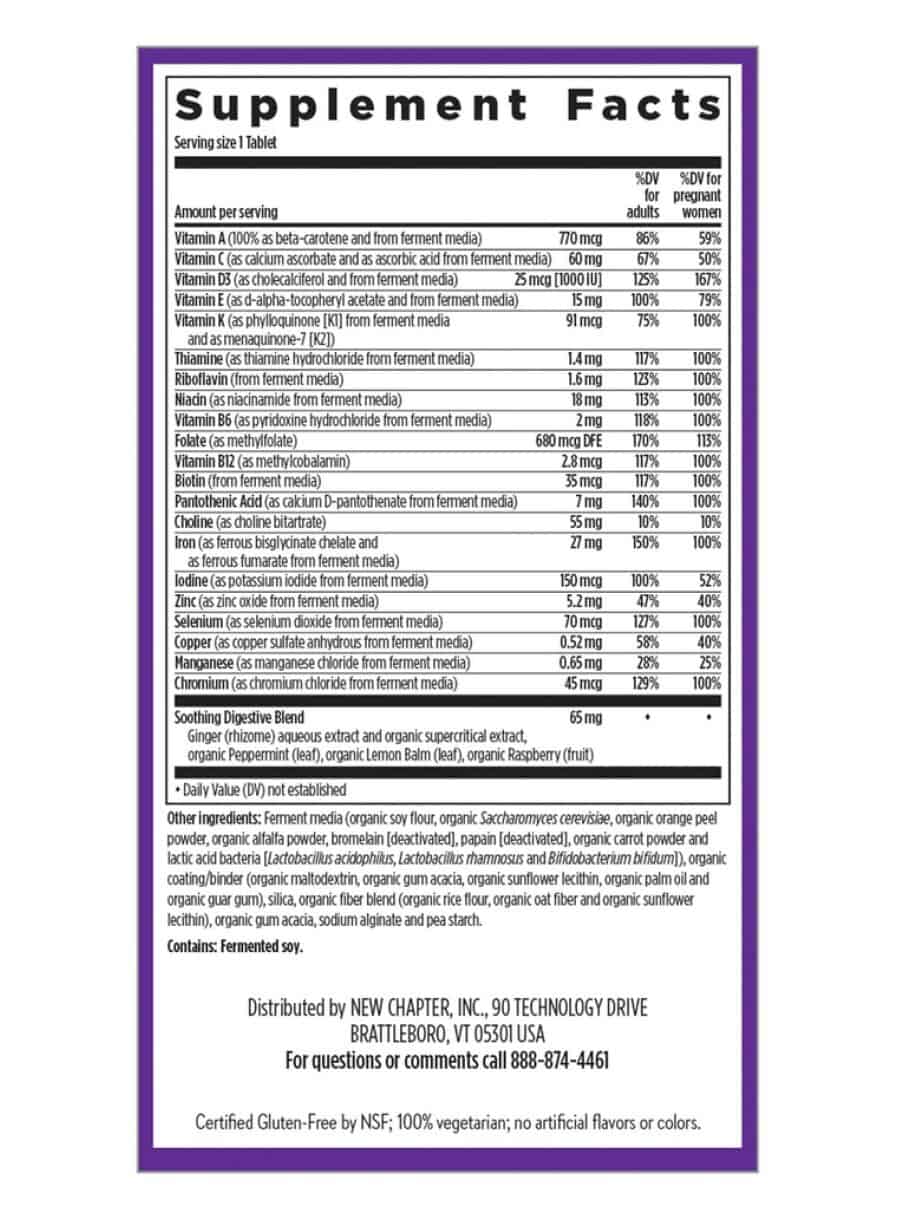 Prenatal One Daily — When you’re pregnant or planning to be, taking excellent care of yourself is essential, and New Chapter® is here to support that! This once-daily prenatal vitamin is crafted with high-quality vitamins and minerals to nourish both you and your baby. It includes cognitive-supporting Methylfolate and Choline, gentle non-constipating Iron, and a clinical dose of Ginger for nausea relief. Formulated for optimal absorption, each tablet is packed with fine-tuned levels of nutrients, and key vitamins and minerals are fermented with probiotics and whole foods. So gentle, you can even take it on an empty stomach, making it a convenient choice for wellness during pregnancy.
