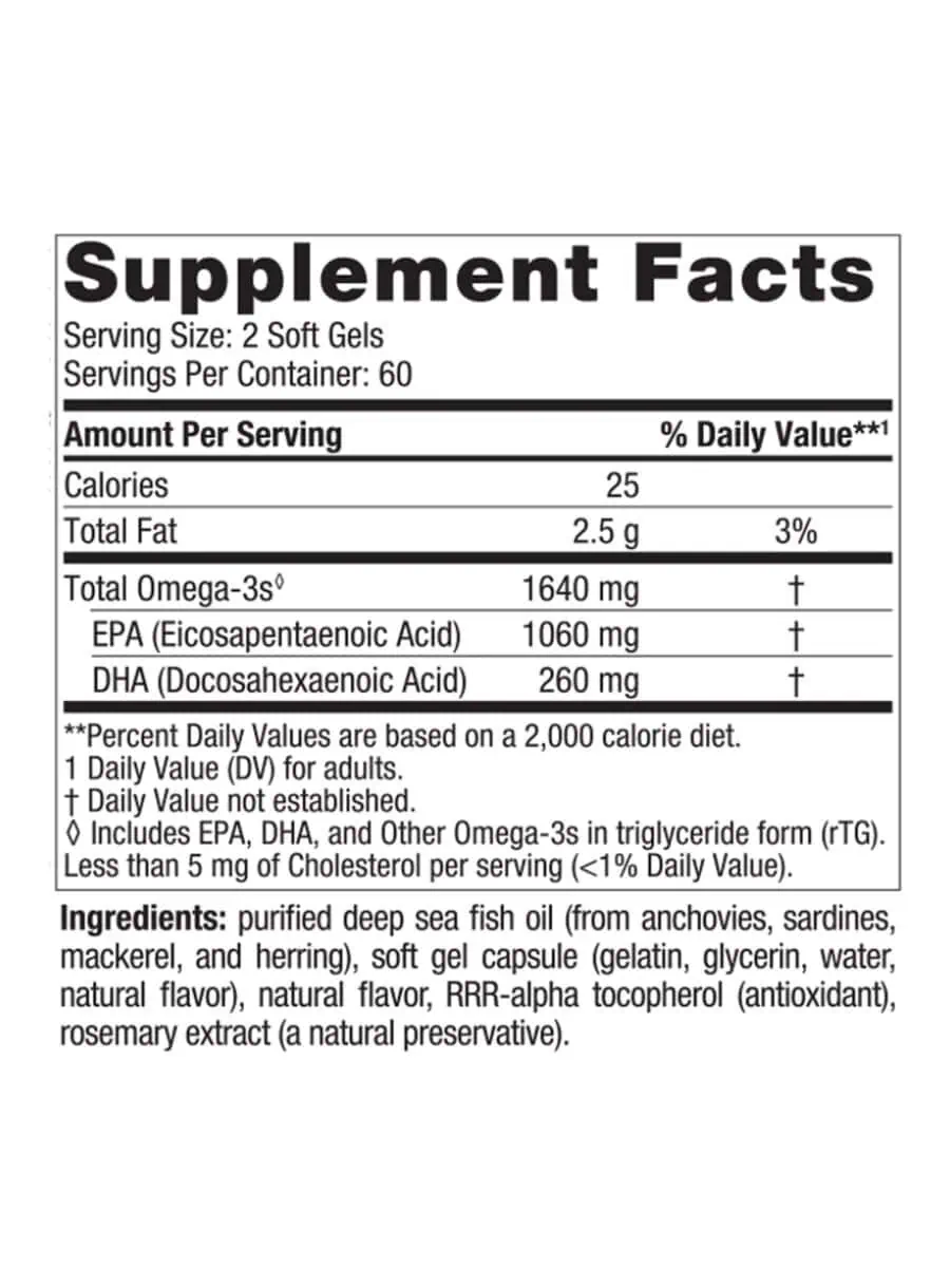 300% more EPA than standard fish oils, 58% EPA : 15% DHA