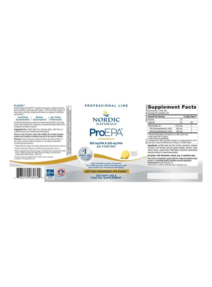 ProEPA contains a high concentration of EPA (Eicosapentaenoic Acid) and DHA (Docosahexaenoic Acid), essential omega-3 fatty acids that contribute to cardiovascular health and overall well-being.