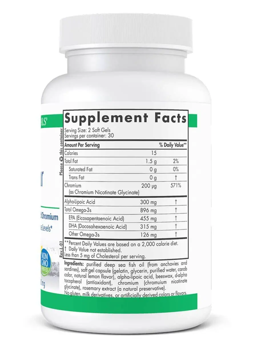 This synergistic formula combines the benefits of Omega-3 fatty acids with Alpha-Lipoic Acid, known for its antioxidant properties and ability to stabilize blood sugar levels. Chromium plays a crucial role in insulin action, helping to metabolize sugar effectively. Together, these ingredients work to support glucose balance and metabolic health.