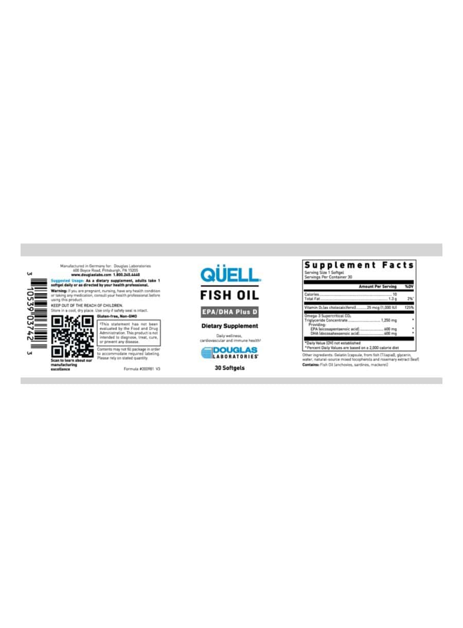 QÜELL High EPA Fish Oil is indicated for those individuals that want the added benefit of Vitamin D3 with EPA and DHA in small, pure, and potent softgels.