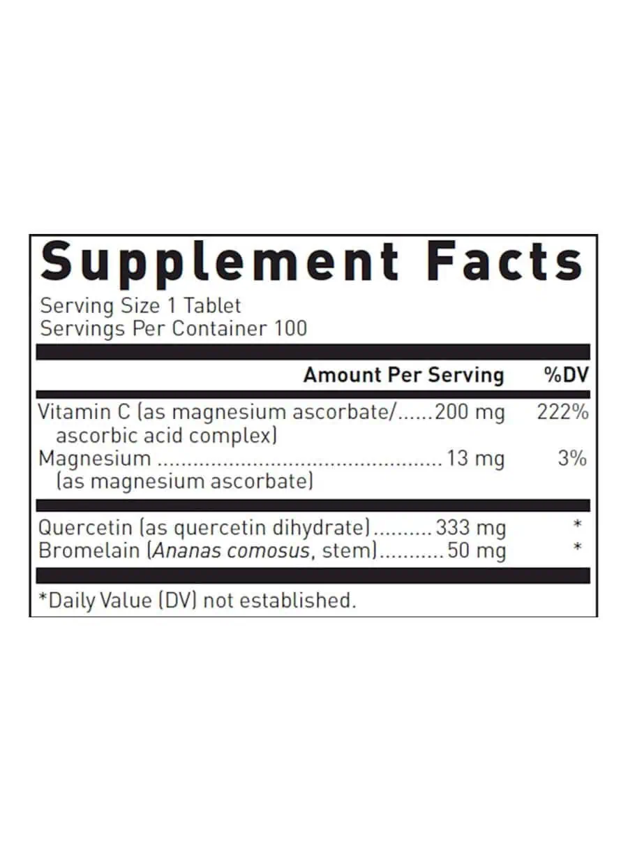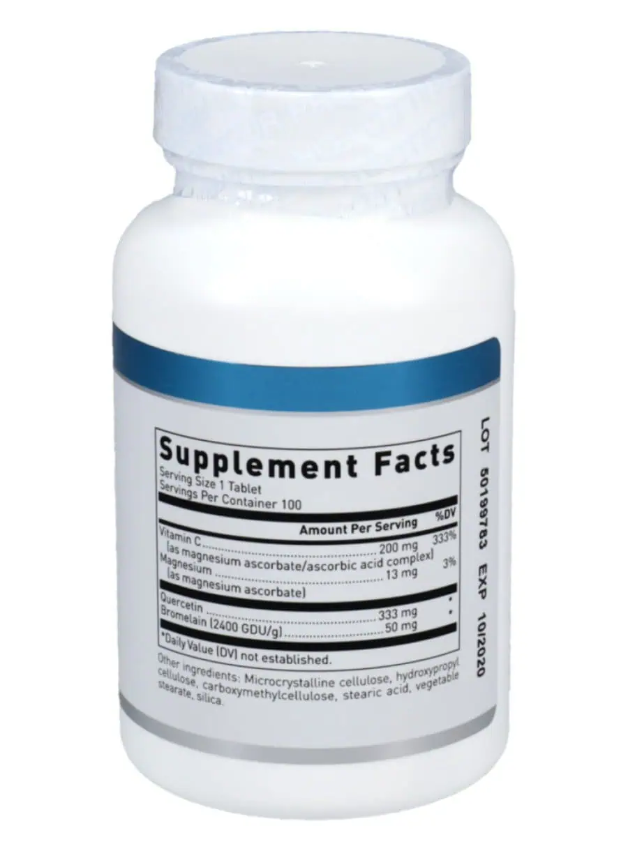 Quercetin-Bromelain Complex is a unique formulation of quercetin, buffered vitamin C, and bromelain. Quercetin is a bioflavonoid that has antioxidant activity to support vascular and immune cell function. Magnesium ascorbate is a buffered form of vitamin C, a key antioxidant, which synergistically supports the quercetin activity. Bromelain is a proteolytic enzyme purified from pineapple.