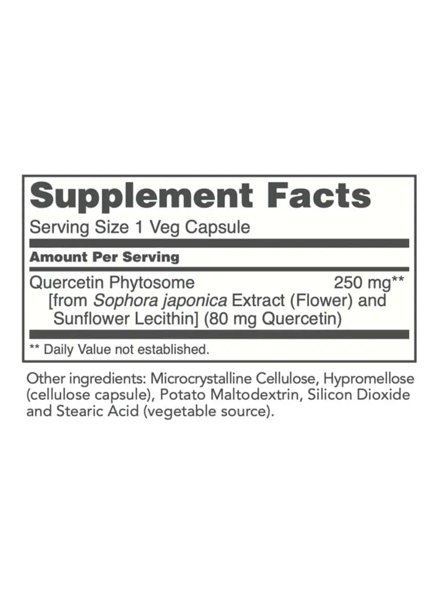This product features Quercetin Phytosome, which is derived from Sophora japonica Extract and enhanced with Sunflower Lecithin for improved absorption.