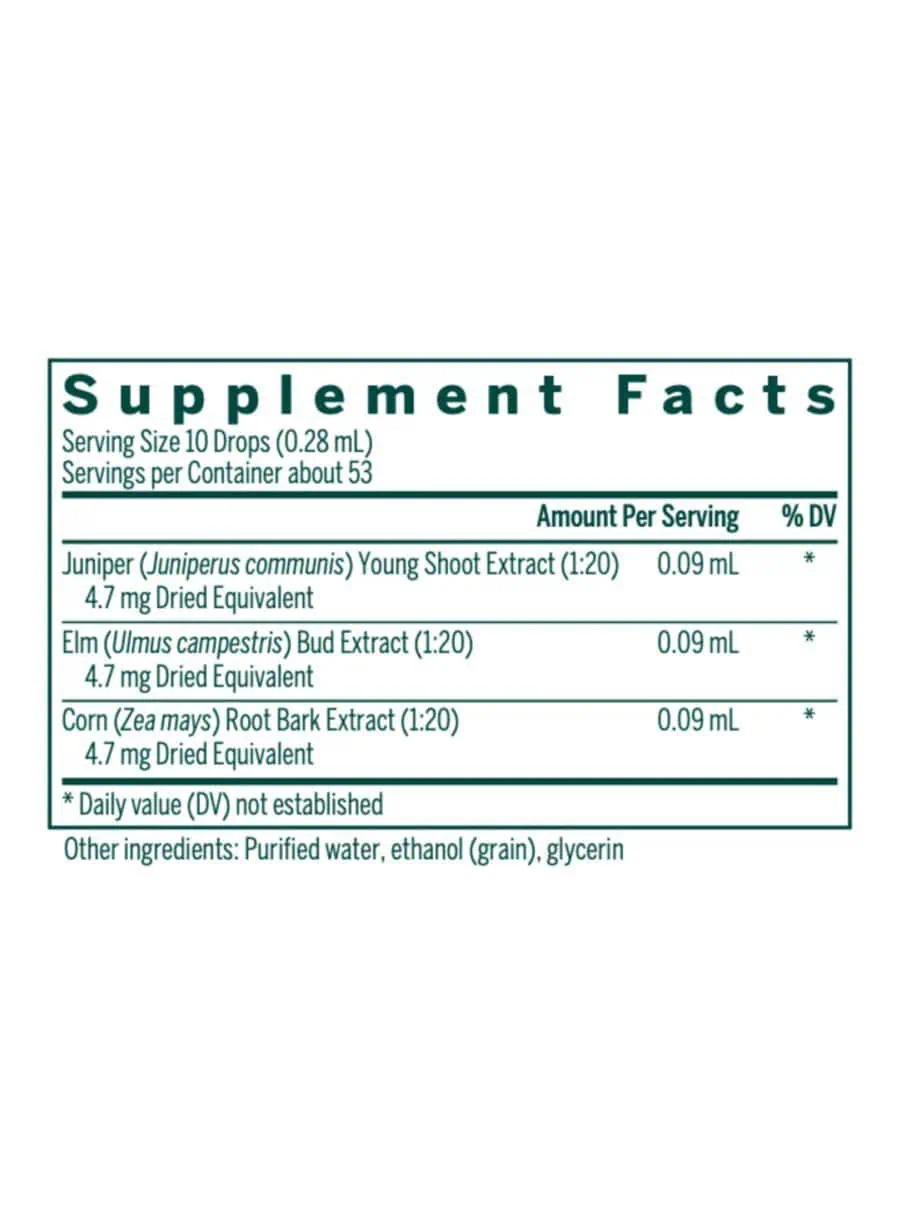 Herbal Supplement — This herbal supplement features a blend of Juniper, Elm, and Corn extracts, designed for adults and children over 12 years. It comes in a convenient drop form, making it easy to incorporate into your daily routine.