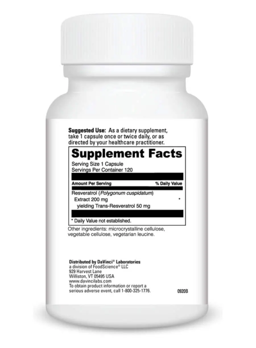 This supplement contains Resveratrol Extract, which yields Trans-Resveratrol, known for its antioxidant properties.