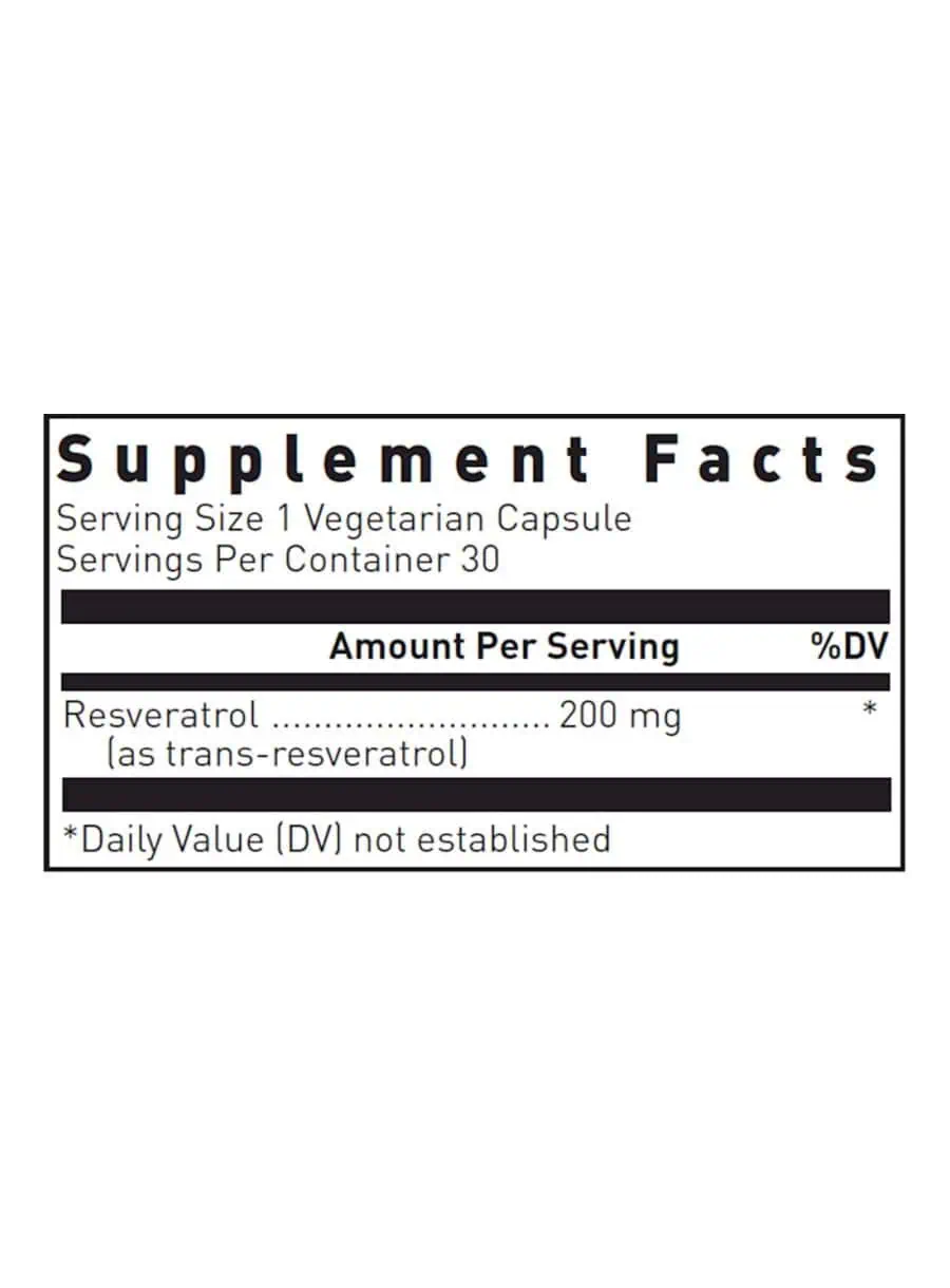 Resveratrol — This supplement provides 200 mg of pure, resVida® trans-resveratrol in vegetarian capsules. As a powerful antioxidant, this high dose of pure resveratrol may support various body systems, including cardiovascular, neurological, and metabolic health. Ideal for adults seeking to enhance their overall wellness.