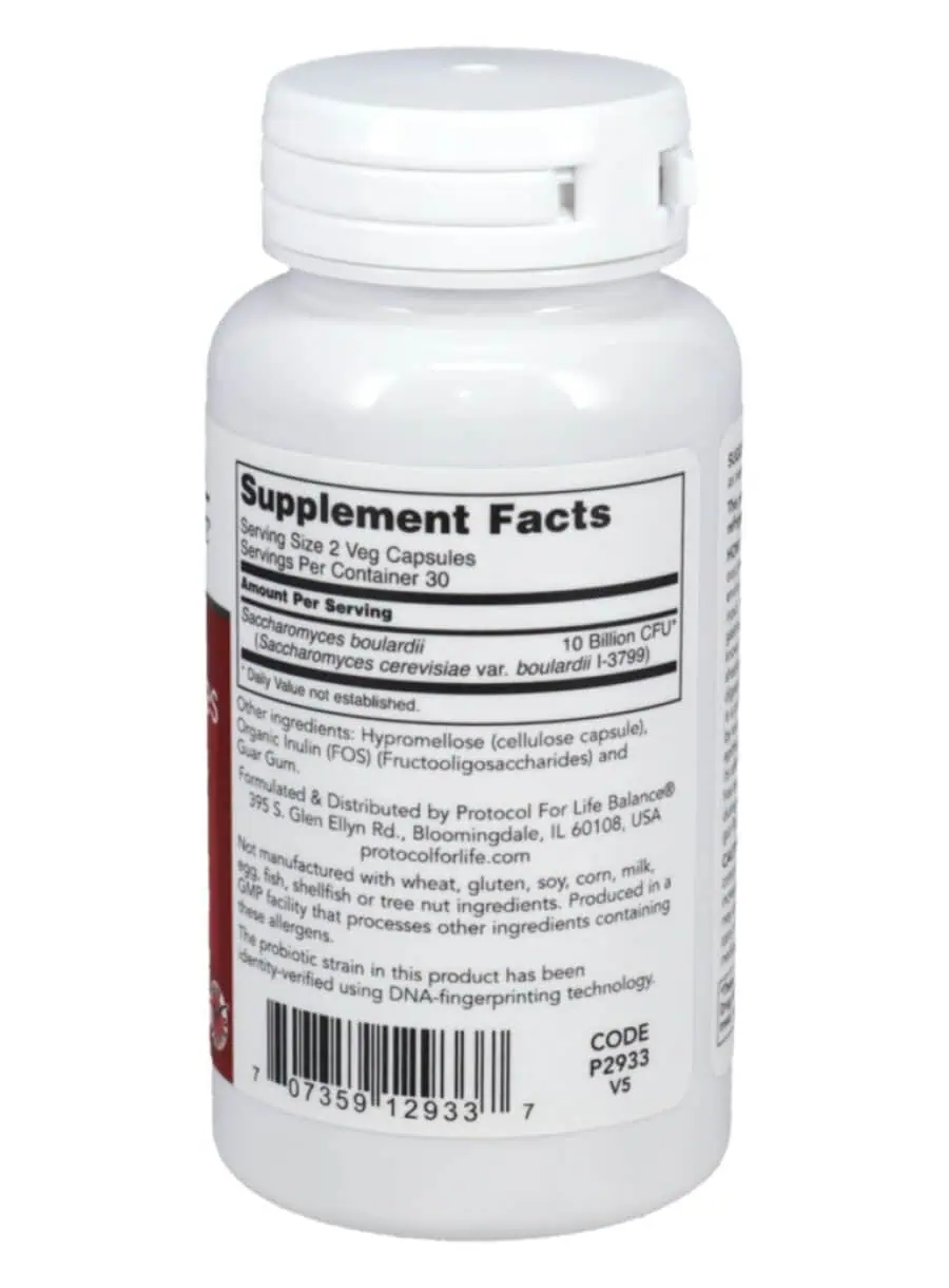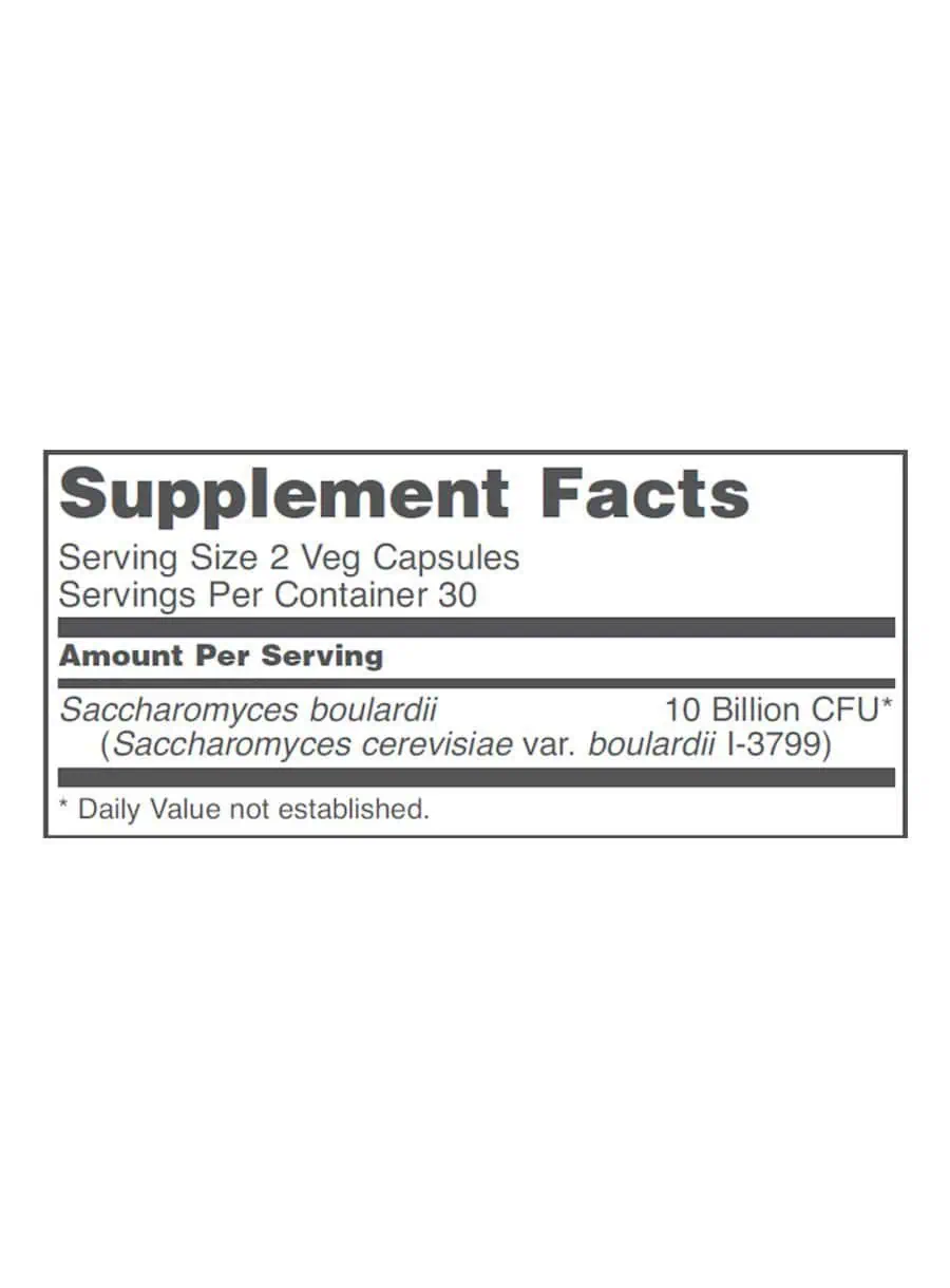 CAUTIONS/INTERACTIONS: The safety of probiotics has not been studied extensively in people with compromised immune systems. Use cautiously in patients prone to infections or those with compromised immune systems, critically ill patients, or in neonates born prematurely or those with immune deficiency, as the use of probiotics may increase the risk of infection in these populations. S. boulardii may interact with antibiotics, antifungals, and anti-diarrheal drugs. Consult your healthcare practitioner before taking this product if you are taking any of these medications, if you are being treated for any medical conditions, or if you are pregnant/lactating.