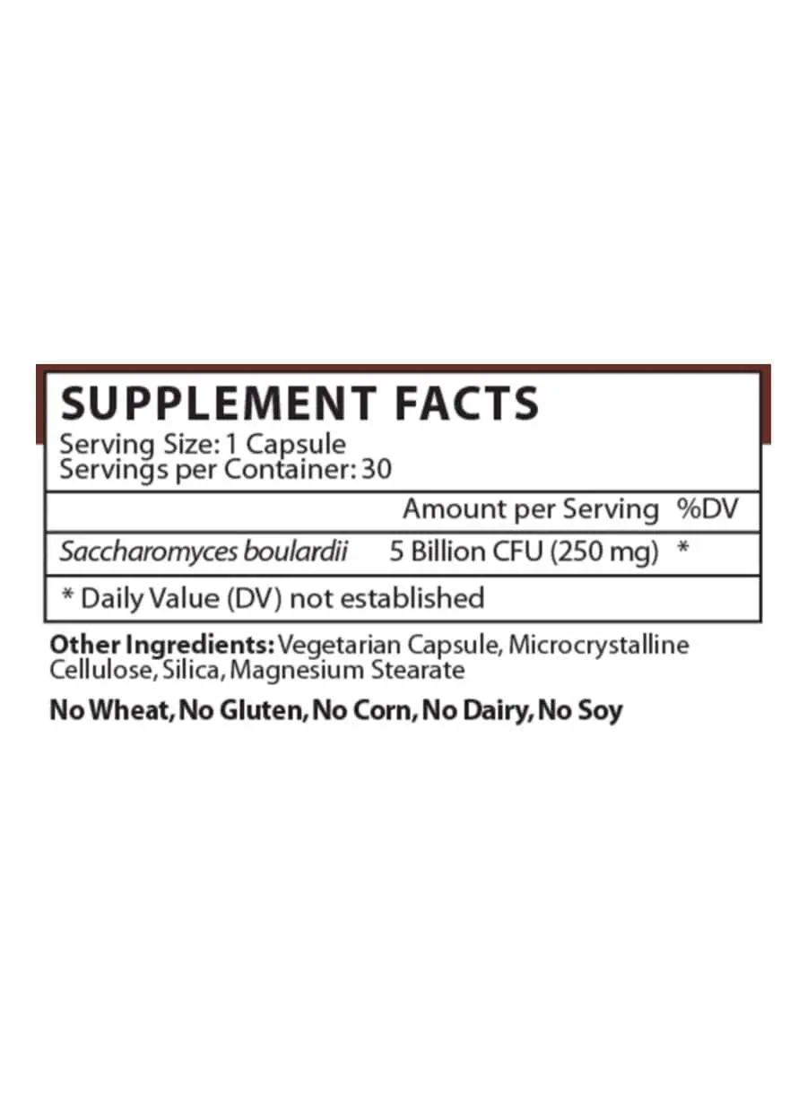 Saccharomyces boulardii — This non-colonizing natural yeast probiotic is designed to promote gastrointestinal health and support immune function. Ideal for both adults and children aged twelve and older, it offers a convenient capsule form that can be taken on an empty stomach or between meals.