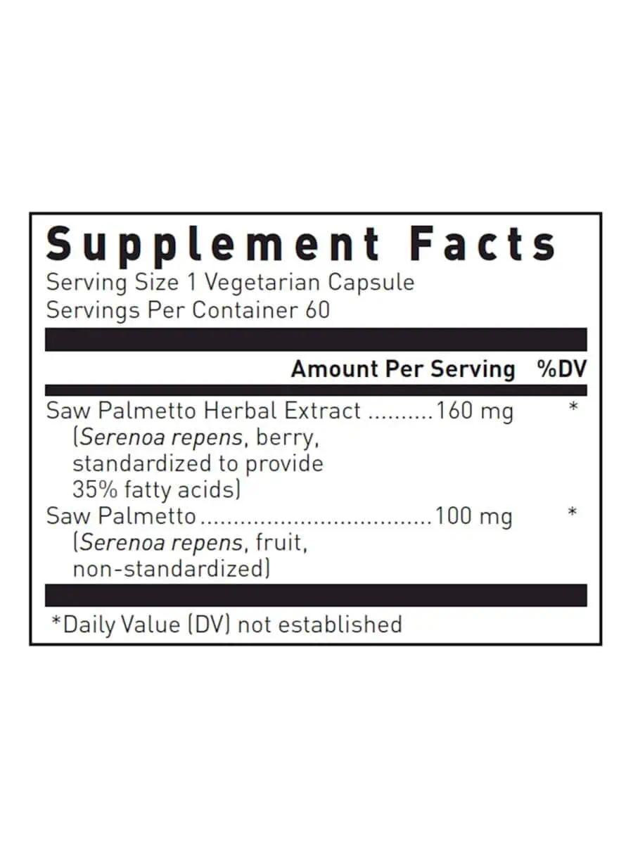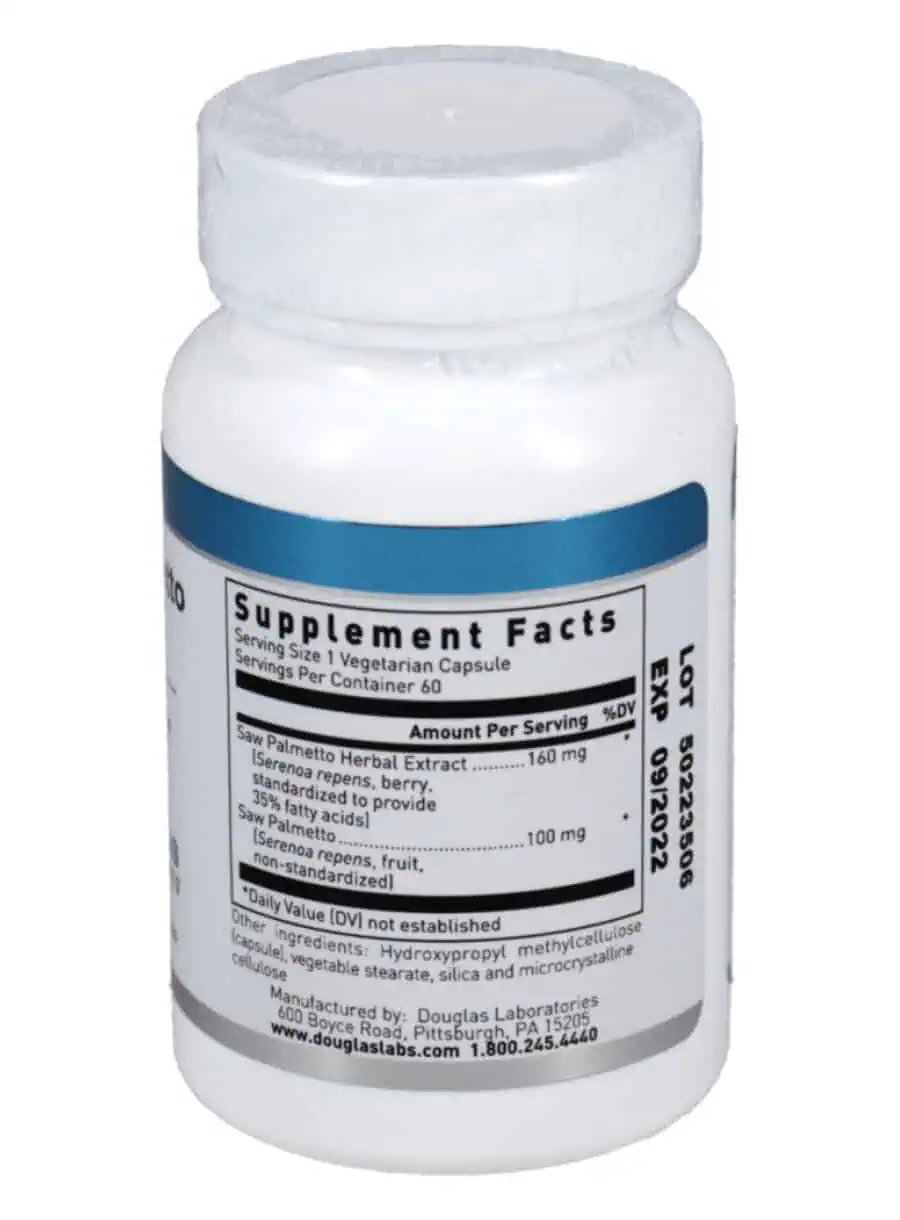 Saw Palmetto Max-V capsules, supplied by Douglas Laboratories, provides 160 mg of standardized saw palmetto in each vegetarian capsule. As men age, the function of their prostate gland tends to change, which can lead to urinary health issues such as hesitancy, urgency, and increased frequency of urination. Studies indicate that saw palmetto may inhibit the conversion of testosterone to dihydrotestosterone (DHT), potentially supporting prostate health.