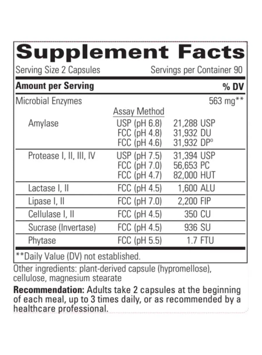 Suggested Use: Take 1 to 2 capsules at the beginning of each meal, or as directed by you heathcare practitioner.