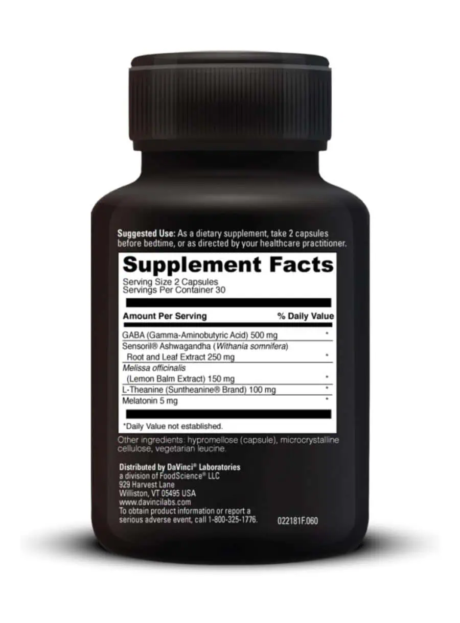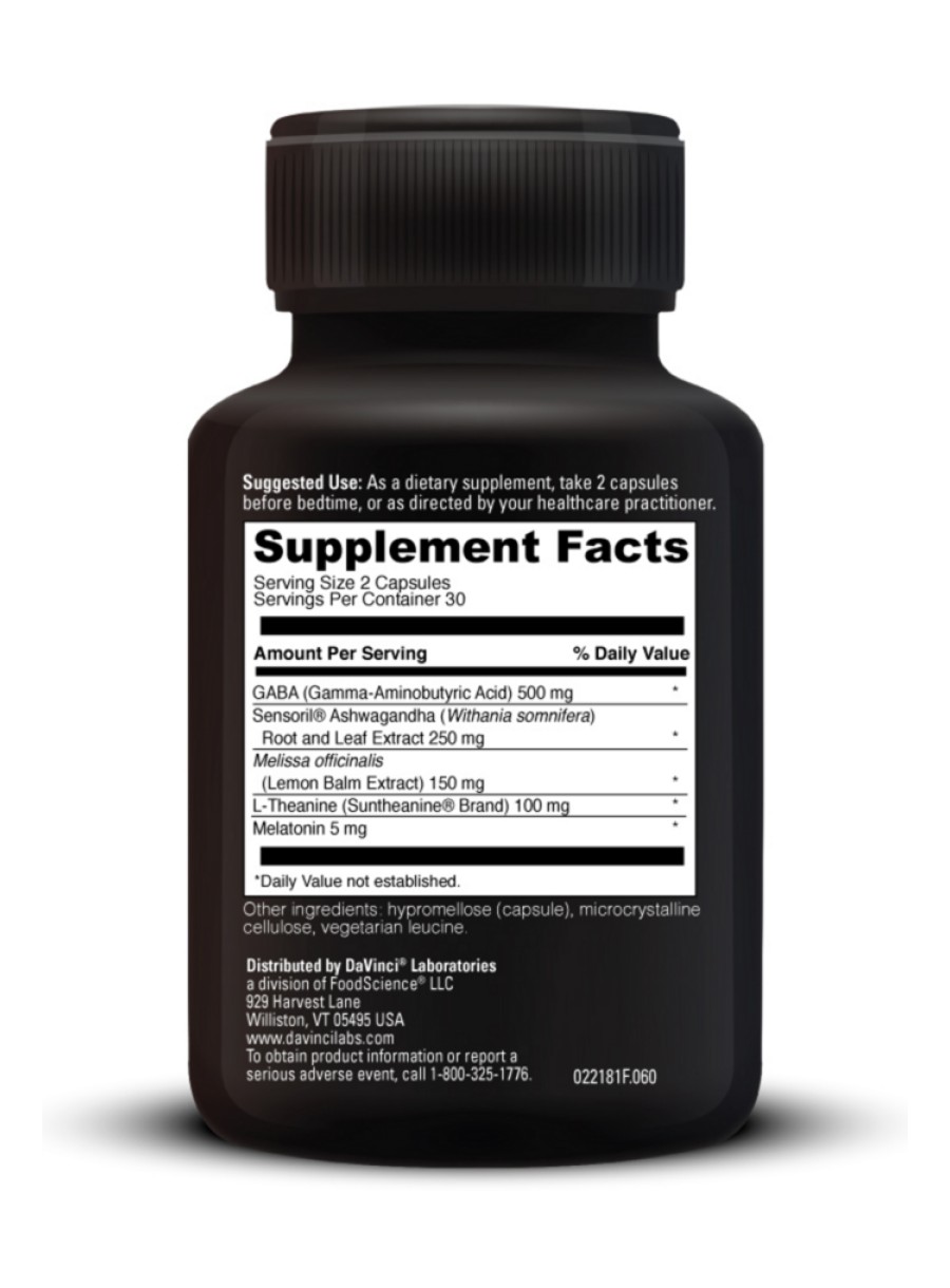 This formula combines GABA, Sensoril® Ashwagandha, Bluenesse®, L-Theanine, and melatonin to promote tranquility and support a healthy sleep cycle.