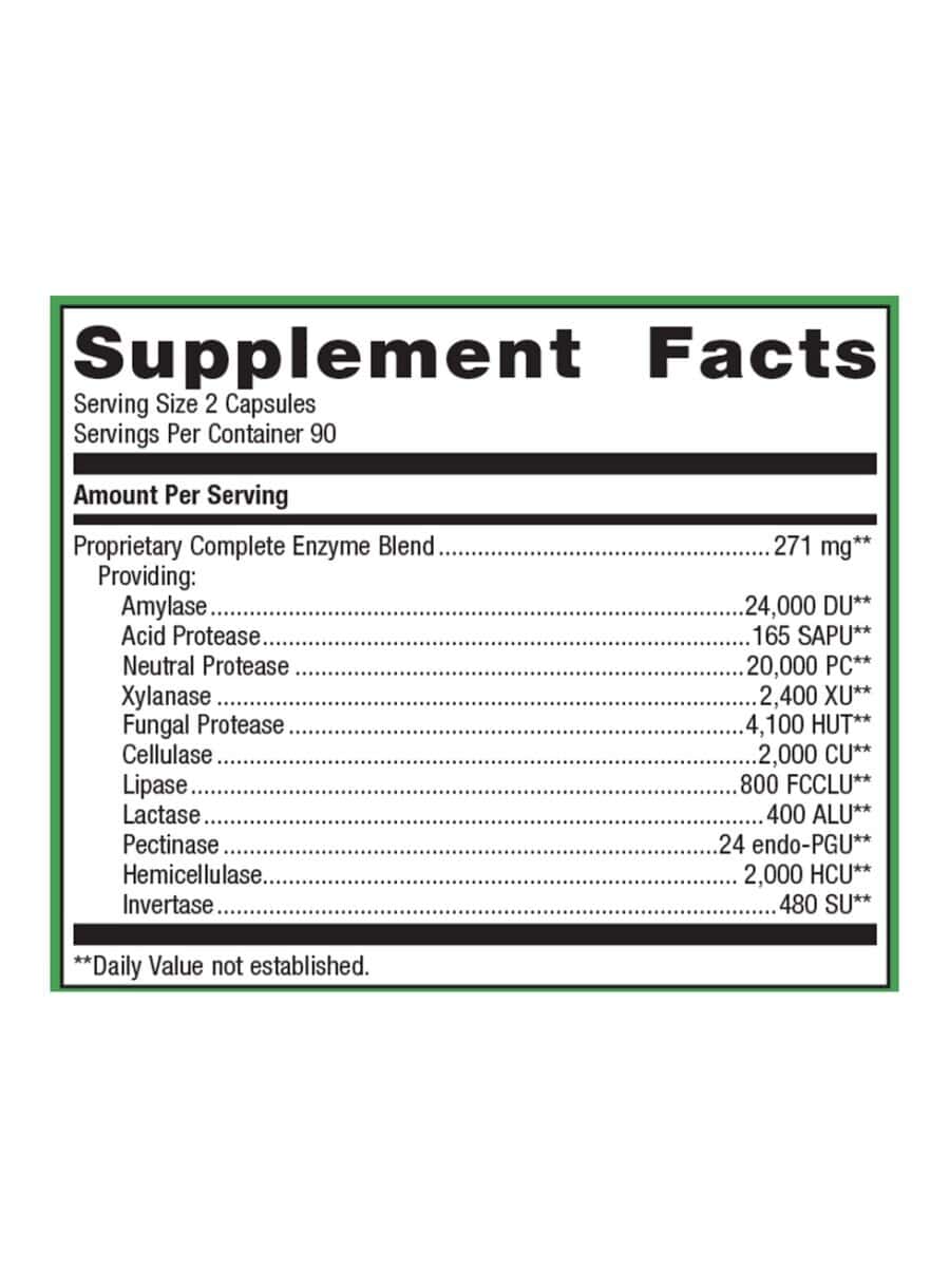 SpectraZyme Complete Enzymes — offers advanced digestive support with a unique blend of broad-spectrum, non-animal derived enzymes. This formula features acid-stable lipase and three proteases across various pH ranges, supporting the digestion of proteins, peptides, carbohydrates, fats, cellulose, maltose, lactose, and sucrose.
