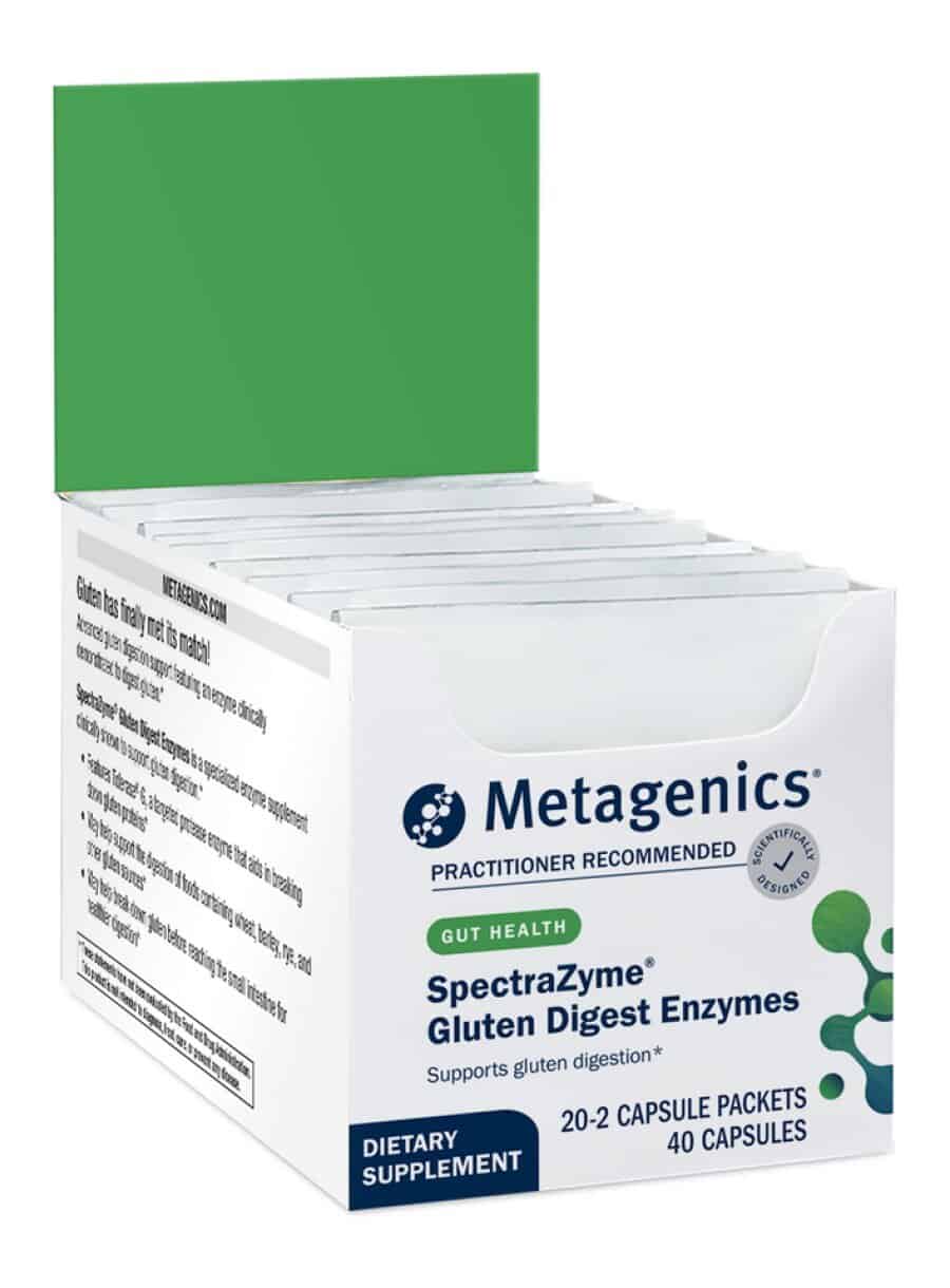 SpectraZyme® Gluten Digest — This specialized enzyme supplement is clinically shown to support gluten digestion. It features Tolerase® G, a targeted protease enzyme that aids in breaking down gluten proteins, making it beneficial for those who consume foods containing wheat, barley, rye, and other gluten sources. By helping to break down gluten before it reaches the small intestine, it promotes healthier digestion.
