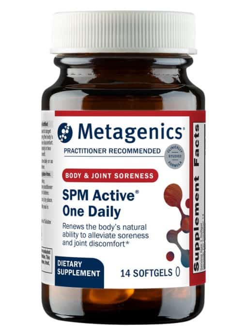 SPM Active One Daily contains Active Fractionated Marine Lipid Concentrate, which is standardized to specific SPM content to help manage discomfort effectively.