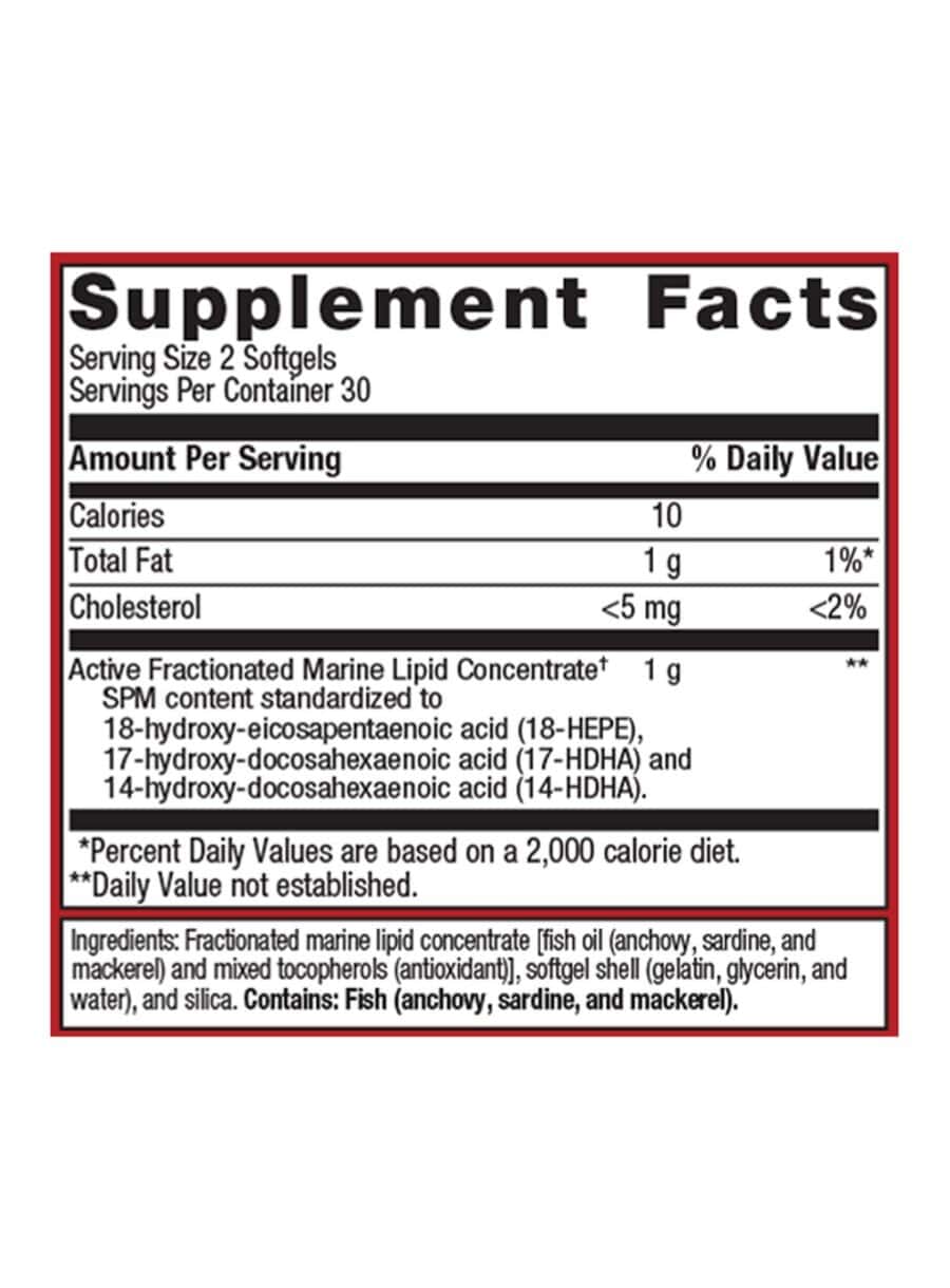 SPM Active contains a standardized SPM content, including 18-hydroxy-eicosapentaenoic acid (18-HEPE), 17-hydroxy-docosahexaenoic acid (17-HDHA), and 14-hydroxy-docosahexaenoic acid (14-HDHA), which are known for their beneficial properties.