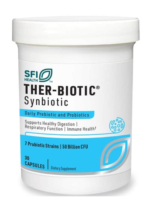 Ther-Biotic® Synbiotic is an advanced, shelf-stable formula expertly designed to provide comprehensive support for the microbiome, respiratory system, and immune health. This synergistic blend features seven potent, strain-specific probiotics, delivering 50 billion CFUs per serving, combined with the low-FODMAP Certified™ prebiotic Sunfiber®. It’s a powerful dual-action synbiotic that works to both seed and feed your gut bacteria, making it suitable for everyone from the healthiest individuals to those with sensitive gastrointestinal systems.