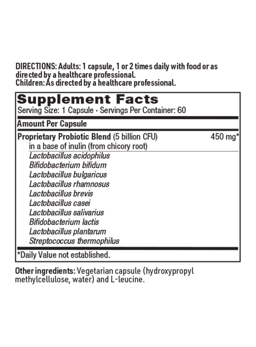 This formula delivers 5 billion CFUs of ten different probiotic species to support the entire gastrointestinal tract, from the small intestine to the colon.