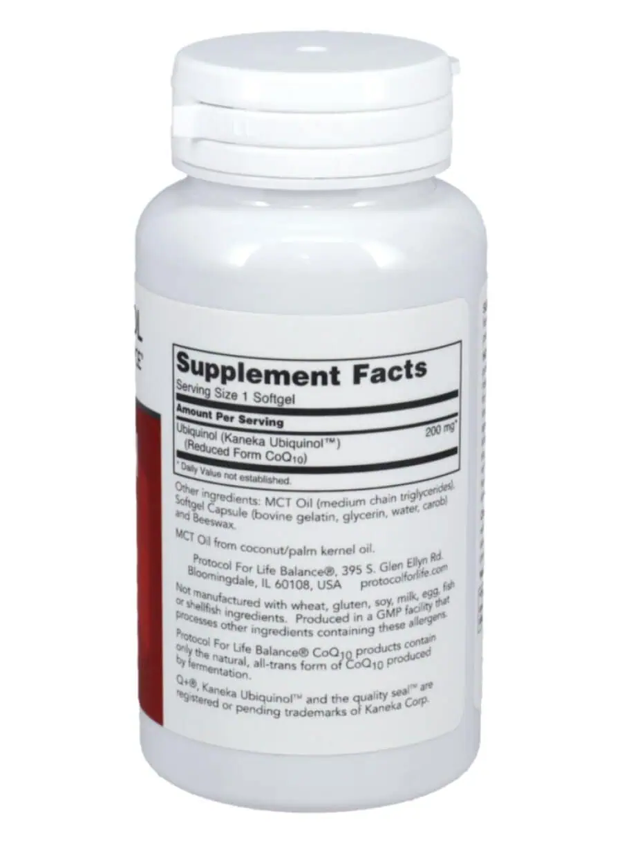 Ubiquinol 200mg — Ubiquinol is the active form of CoQ10 produced naturally within the body that plays a central role in cellular energy production. Known for its powerful free radical neutralizing activity, Ubiquinol is important for protecting biological membranes against oxidative stress and regenerating other antioxidants such as Vitamin C and Vitamin E. Clinical and experimental studies have demonstrated that Ubiquinol can help support normal cardiovascular and neuronal functions, and may also support male reproductive health. Ubiquinol has superior bioavailability to other forms of CoQ10, as shown in clinical trials.