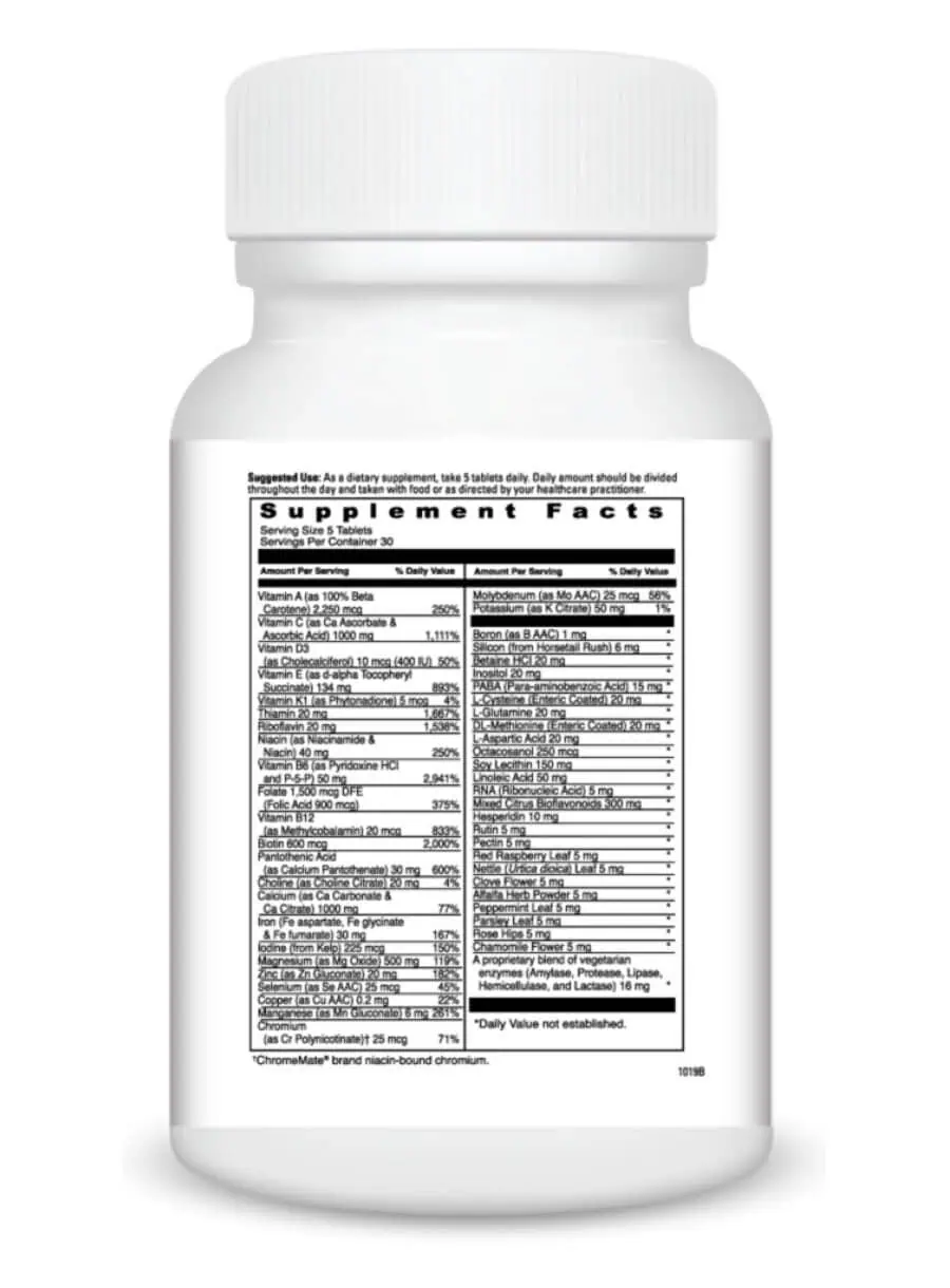 Ultimate Prenatal — This vegetarian multiple vitamin/mineral supplement is designed specifically for pregnant and nursing mothers, providing 58 essential nutrients. It emphasizes the form, balance, and potency of each nutrient, including calcium, folic acid, B6, B12, biotin, iron, and copper. Additionally, it features beneficial herbs such as red raspberry, nettle, clove, alfalfa, mint, parsley, rose, and chamomile to support digestion and overall wellness during pregnancy. Notably, the Vitamin A in Ultimate Prenatal is derived entirely from beta carotene, ensuring a safe and effective source of this vital nutrient.