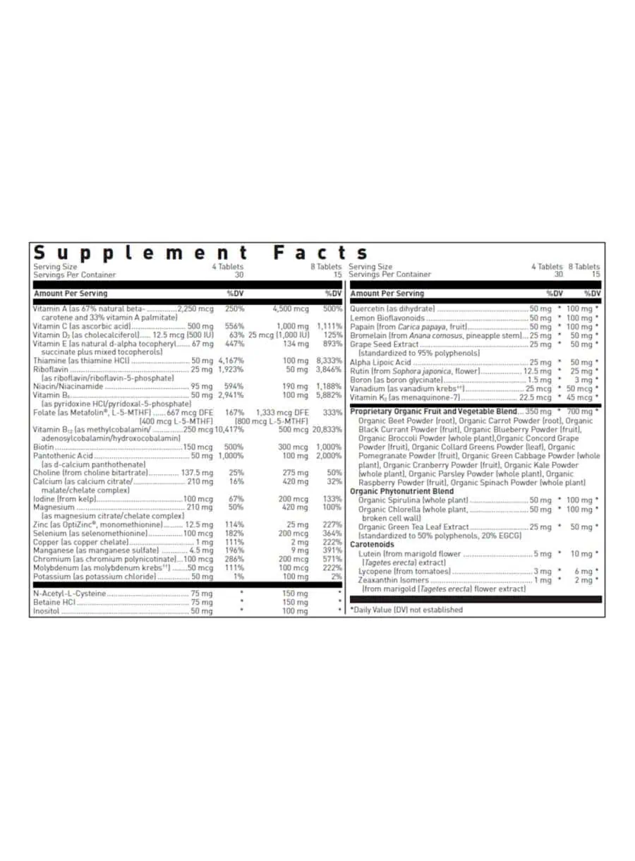 - Comprehensive multivitamin and mineral support