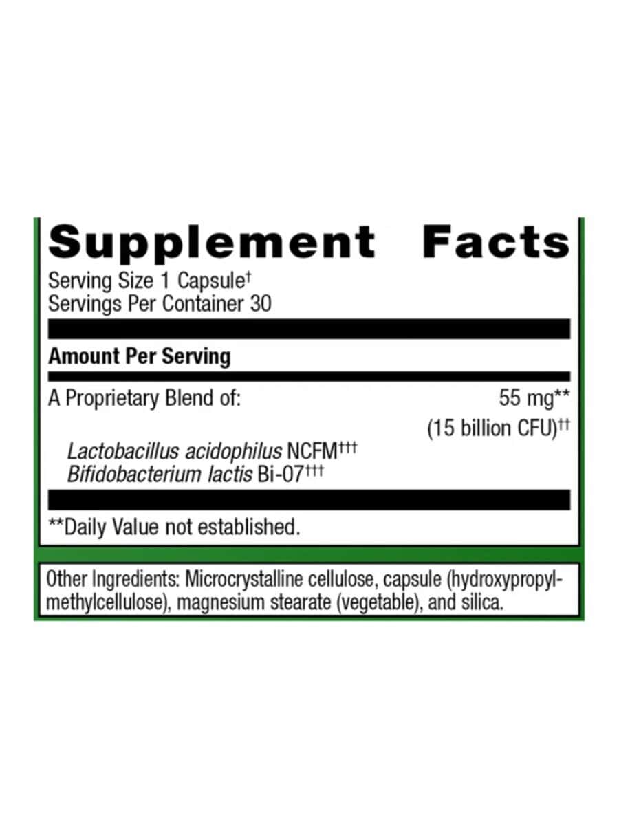 Powered by Lactobacillus acidophilus NCFM®—a clinically studied strain with over 60 trials—and Bifidobacterium lactis Bi-07® for comprehensive probiotic support. One capsule delivers the equivalent probiotic content of 15 bottles of kombucha—without the sugar.